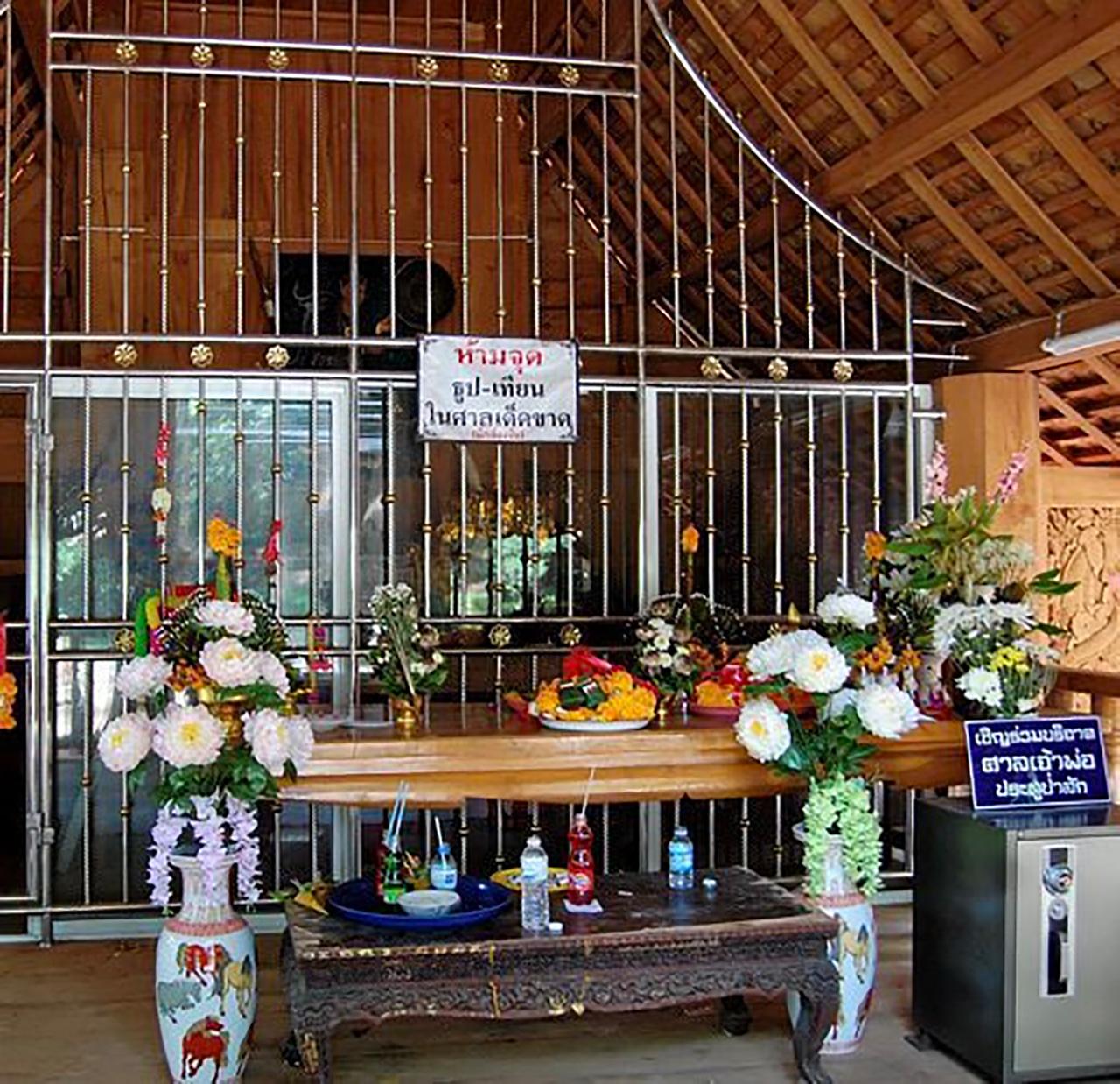 จนต่อมา...ได้สร้างศาลเรือนไม้สถาปัตยกรรมล้านนา คล้ายวิหารพระอารามให้ดวงวิญญาณเจ้าพ่อเสด็จประทับ ภายในมีภาพเขียนรูปเจ้าพ่อประดับเหนือผนัง คู่ศัสตราวุธคู่พระองค์