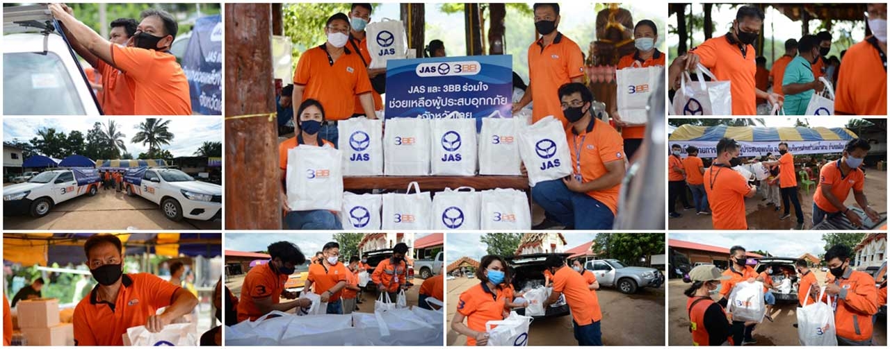 คณะผู้บริหารและเจ้าหน้าที่ 3BB จากศูนย์ปฏิบัติการภาคตะวันออกเฉียงเหนือตอนบน จึงได้ลงพื้นที่ช่วยเหลือและมอบถุงยังชีพจำนวน 300 ถุง บรรจุอาหารและสิ่งของจำเป็น เพื่อแจกจ่ายและบรรเทาความเดือดร้อนให้กับผู้ประสบอุทกภัย โดยเมื่อวันที่ 5 สิงหาคม คุณธยานนท์ วิเศษจิตเลิศ ผู้อำนวยการภาคตะวันออกเฉียงเหนือตอนบนและคณะ ได้เข้ามอบถุงยังชีพให้กับศูนย์อำนวยการช่วยเหลือผู้ประสบอุทกภัย ณ วัดศรีสว่างวารี อ.เมือง จ.เลย โดยมีคุณจรูญ พานิช นายกองค์การบริหารส่วนตำบลน้ำสวย เป็นผู้รับมอบ และในวันที่ 6 สิงหาคม คณะจาก 3BB เดินทางไปมอบถุงยังชีพให้กับประชาชนที่ได้รับความเดือดร้อนกว่า 250 หลังคาเรือน ในพื้นที่บ้านสูบ หมู่ที่ 1 และหมู่ที่ 9 ต.น้ำสวย อ.เมือง จ.เลย อีกด้วย