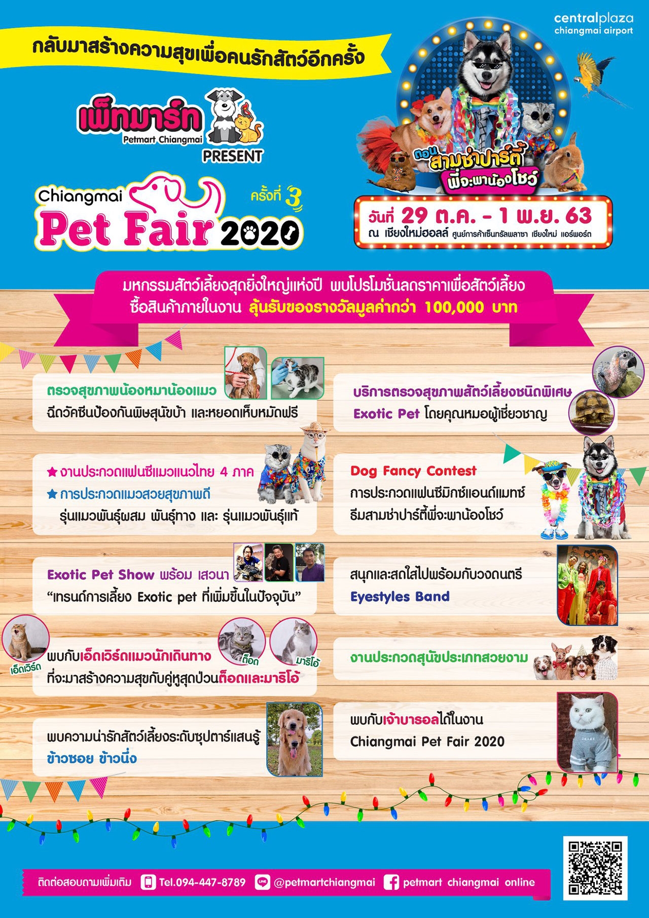 ภายในงานทุกท่านจะได้พบกับความน่ารักของสัตว์เลี้ยงซุป'ตาร์แสนรู้ ข้าวซอย-ข้าวนึ่ง, ครอบครัวเจ้าบารอลพร้อมน้องบูริลและเบลล่า, เอ็ด เวิร์ดแมวนักเดินทางที่จะมาสร้างความสุขกับคู่หูสุดป่วน ต๊อดและมาริโอ้, งานประกวดแฟนซีแมวแนวไทย4ภาค, การประกวดแมวสุขภาพดี, กิจกรรม Exotic Pet Show พร้อมเสวนาเทรนด์การเลี้ยง Exotic pet ที่เพิ่มขึ้นในปัจจุบัน, การประกวดสุนัขประเภทสวยงาม, การประกวดแฟนซีมิกซ์แอนด์แมตช์, การประกวดแฟนซีมิกซ์แอนด์แมตช์ ธีมสามซ่าปาร์ตี้พี่จะพาน้องโชว์, บริการตรวจสุขภาพน้องหมาน้องแมว ฉีดวัคซีนป้องกันพิษสุนัขบ้าและหยอดเห็บหมัดฟรี, บริการตรวจสุขภาพสัตว์เลี้ยงชนิดพิเศษ Exotic Pet โดยคุณหมอผู้เชี่ยวชาญ, กิจกรรมช้อปแชะแชร์ เมื่อซื้อสินค้าในงานครบ 1,000 บาท รับฟรีถ่ายภาพกับลูกๆ สุดที่รัก พร้อมเลือกซื้อสินค้าในราคาพิเศษมากมาย ระหว่างวันที่ 29 ตุลาคม – 1 พฤศจิกายน 2563 ณ เชียงใหม่ฮอลล์ ศูนย์การค้าเซ็นทรัล พลาซา เชียงใหม่ แอร์พอร์ต