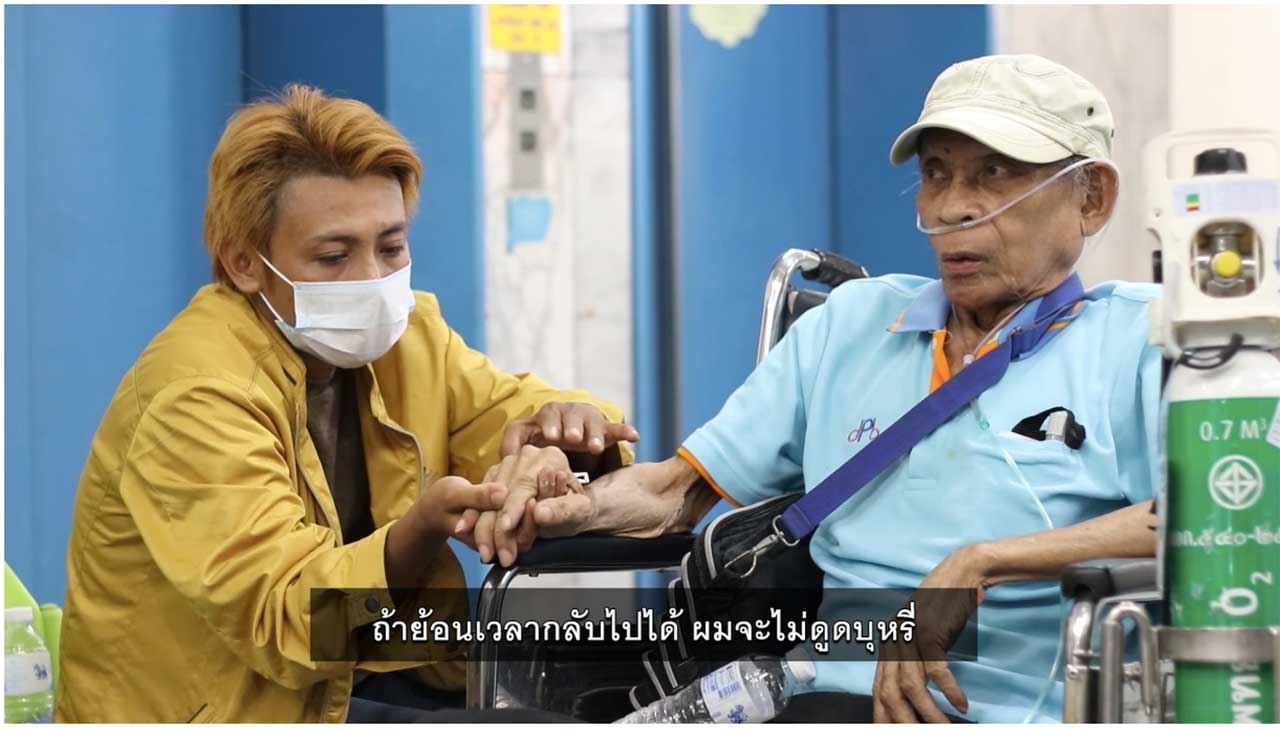 “ผมเคยทำงานรับเหมา จนเข้ามาทำงานกรุงเทพฯ ก็ได้ดิบได้ดี มีเงินใช้ แต่ต้องมาล้มละลาย เพราะเป็นโรคถุงลมโป่งพอง ทำงานไม่ได้ พยายามทู่ซี้ทำงานต่ออีก 3 ปี แต่มันทำไม่ไหว จนเริ่มท้อ สุดท้ายทรัพย์สินต่างๆ โดนยึด จากเคยมีครอบครัวสมบูรณ์ มีเงินใช้ หาเงินได้วันละเป็นหมื่น ตอนนี้ 10 บาทยังหาไม่ได้ ทุกอย่างตกต่ำลงกว่าศูนย์เพราะบุหรี่”