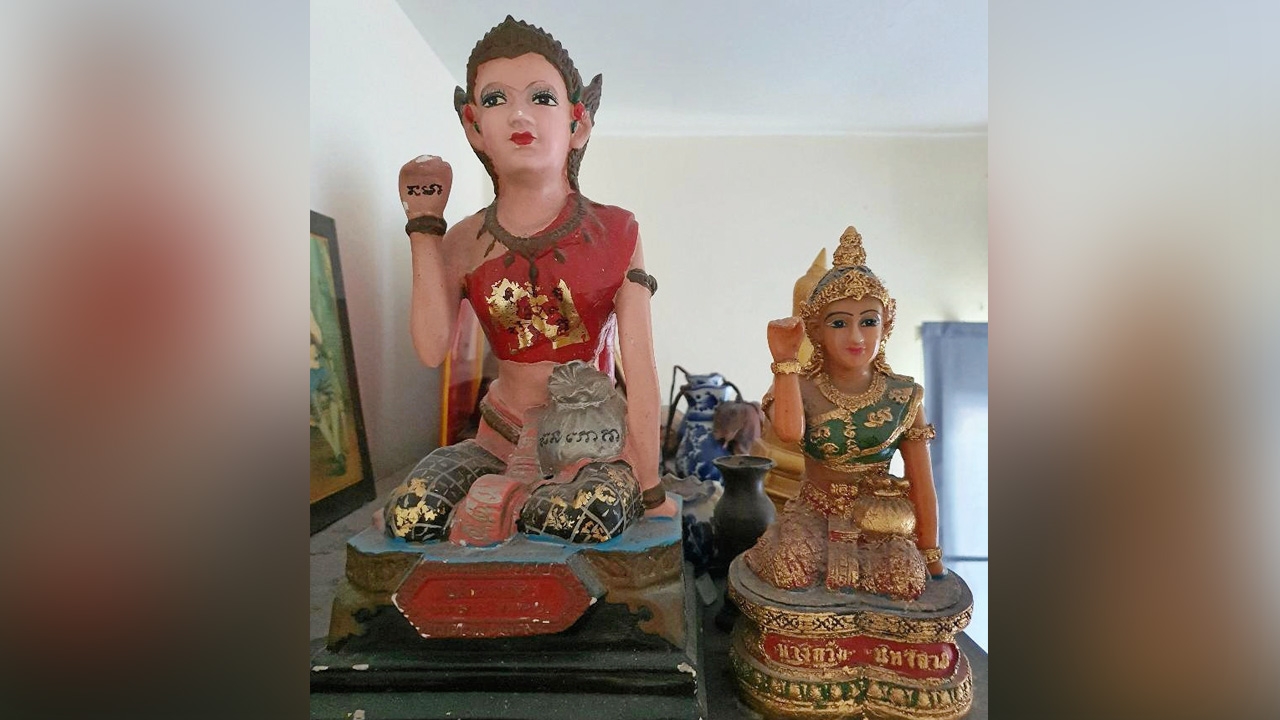 “นางกวัก” บูชาเป็น “เมตตามหาอุด”... กวักเรียกลูกค้า “นางกวัก”...ตามคติความเชื่อเป็นเทพีแห่งโชคลาภ รูปร่างลักษณะโดยทั่วไปอยู่ในร่างผู้หญิง สวมเครื่องแต่งกาย แต่งองค์ทรงเครื่องประดับแบบไทย นั่งพับเพียบ มือซ้ายจะวางบนตักหรือวางแตะข้างลำตัว