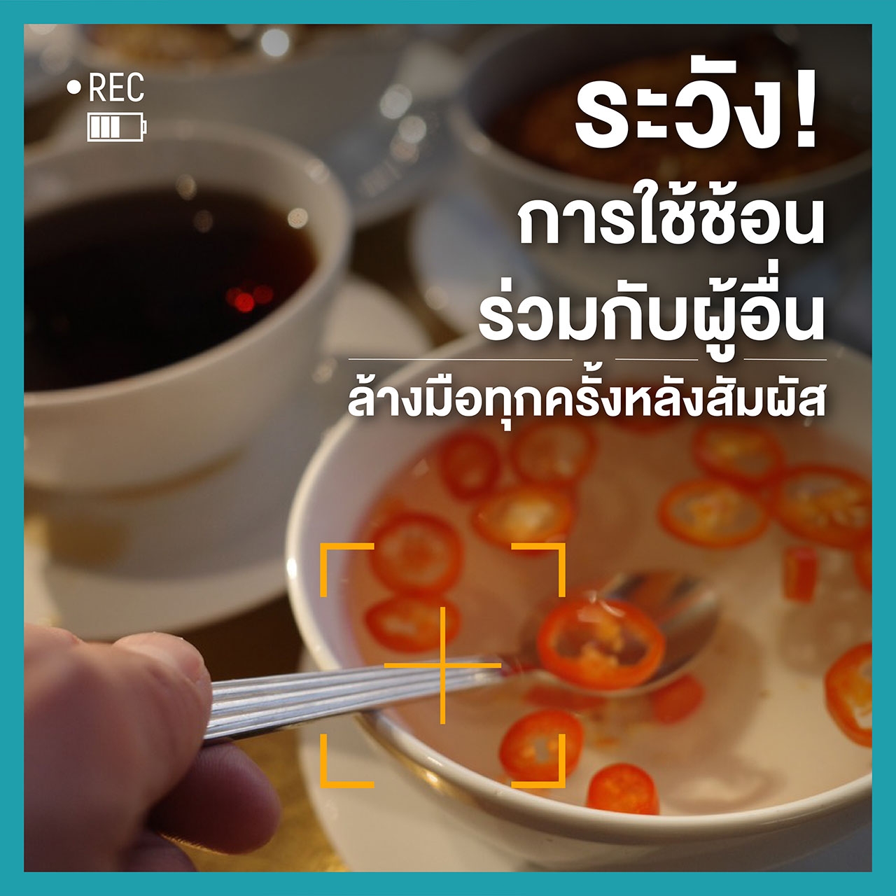 ควรหลีกเลี่ยงการสัมผัสภาชนะของผู้อื่น เพราะมีโอกาสที่เราจะสัมผัสกับสารคัดหลั่ง จนนำไปสู่การได้รับเชื้อโรคต่างๆ ได้