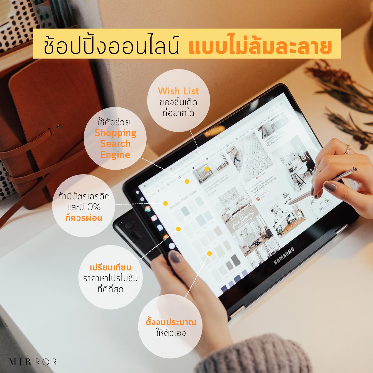 อยากได้ไปหมดแหละ แต่งบประมาณเนี่ยมีเท่าไร จะช็อปอะไรยังไงไม่มีใครว่า แต่ต้องดูงบประมาณของตัวเองไว้ด้วยว่าช็อปได้เท่าไร ควรคำนวณ และแบ่งสัดส่วนของเงินไว้ให้ดี เพราะคงไม่มีใครอยากต้องกินแต่มาม่าตอนสิ้นเดือนกันเนอะ