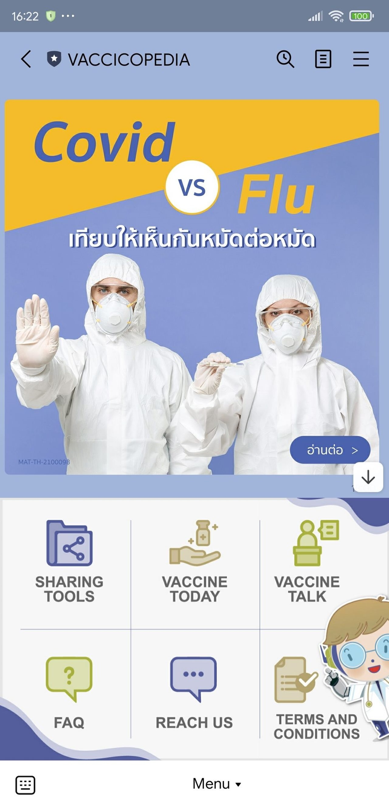 Line Official Account ของซาโนฟี่ ปาสเตอร์ในชื่อ Vaccicopedia