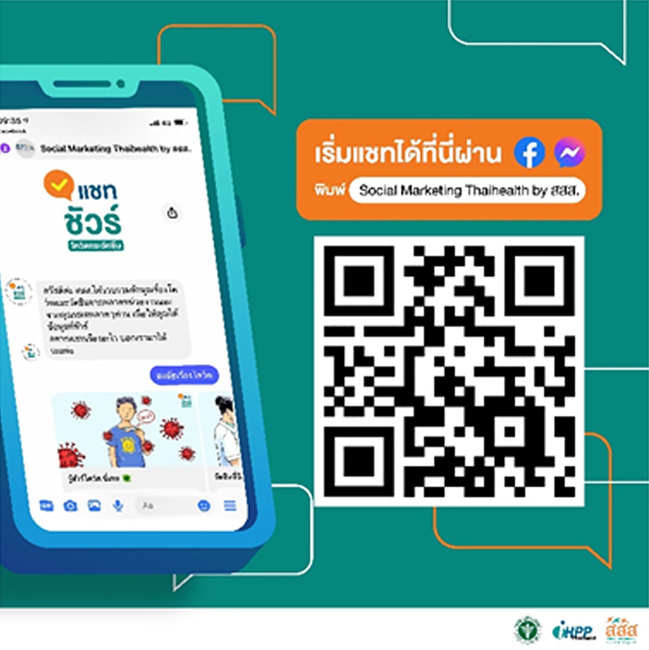 2.เข้าทางแอปพลิเคชัน Messenger ค้นหาชื่อเพจ Social Marketing Thaihealth by สสส. เพื่อเริ่มใช้งาน