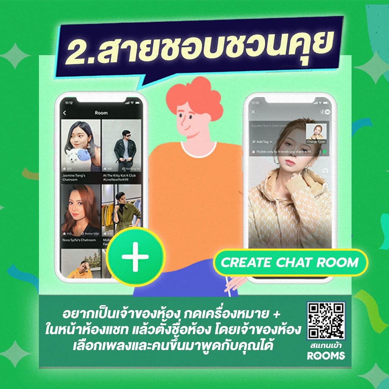 คิดถึงเพื่อนก็ ROOMS เลย: ไม่เจอเพื่อนนานก็ไม่เป็นไร เพราะ ROOMS ให้คุณสร้างห้องแชตแล้วส่งคำเชิญไปให้เพื่อนของคุณเข้ามาปาร์ตี้ด้วยกันได้ เห็นหน้ากันครบ ไม่ต้องกลัวนัดแล้วโดนเทอีกต่อไป