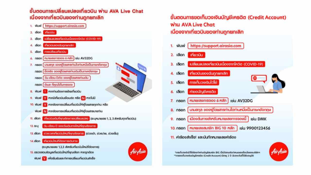 เปลี่ยนเที่ยวบินเองผ่าน AVA