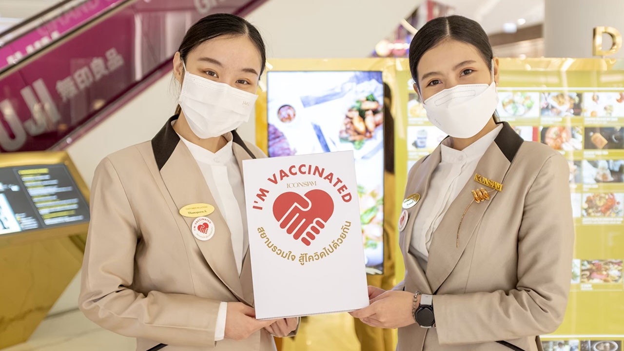 จากมาตรการที่เคร่งครัดมากขึ้นในปัจจุบันที่กำหนดให้ปิดสถานที่และกิจการบางประเภทชั่วคราว โดยเปิดให้บริการได้เฉพาะซุปเปอร์มาร์เก็ต ร้านขายยาและเวชภัณฑ์ ร้านค้าสะดวกซื้อ รวมถึงหน่วยบริการฉีดวัคซีนที่ทางภาครัฐจัดไว้ ไอคอนสยาม และวันสยาม ห่วงใยและมุ่งมั่นในการป้องกันการแพร่ระบาดโควิด-19 อย่างสูงสุด จึงตอบรับมาตรการของภาครัฐในการลดความเสี่ยงจากการแพร่กระจายของไวรัสโควิด-19 ควบคู่กับความพยายามอย่างยิ่งเพื่อตอบสนองความต้องการของลูกค้าอย่างเต็มที่ ด้วยบริการช้อปออนไลน์หลากหลายรูปแบบ ครบครัน สะดวก สะอาด เคร่งครัดในการดำเนินมาตรการความสะอาด และสุขอนามัยขั้นสูงสุดอย่างเข้มข้นและต่อเนื่อง ดังนี้