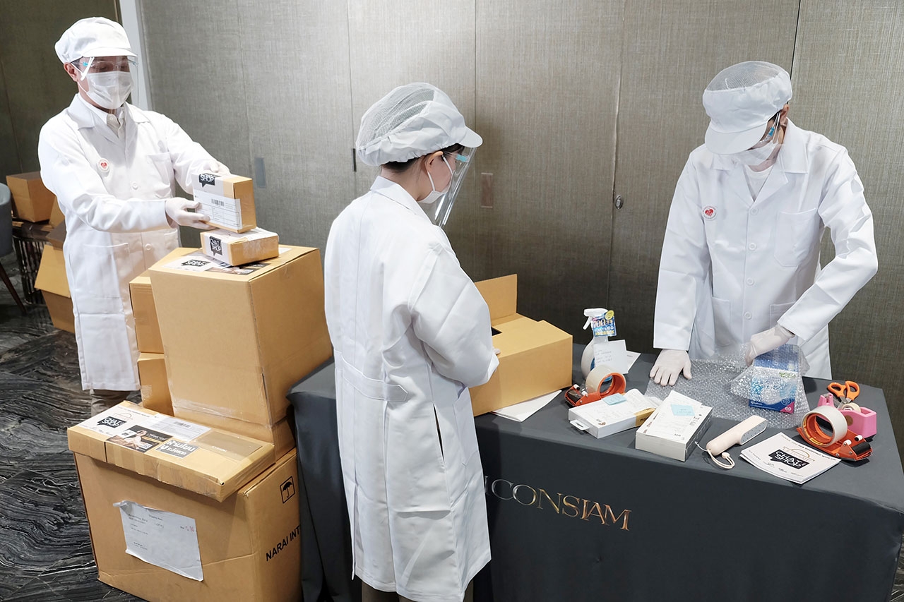 2. ยกระดับมาตรการความปลอดภัยของบริการช้อปออนไลน์ ทั้งไอคอนสยาม และวันสยาม ที่มีอยู่หลากหลายบริการครบครันทุกประเภทสินค้า โดย ICONSIAM และ ONESIAM Ultimate Chat & Shop, Call & Shop, Click & Shop และ Luxury Chat & Shop ด้วยกระบวนการฆ่าเชื้อบนพื้นผิวสินค้า บรรจุภัณฑ์ และกล่องพัสดุ ด้วยเครื่องฆ่าเชื้อจากรังสี UV-C (Handheld Ultraviolet Disinfection Lamp) ก่อนส่งมอบถึงมือลูกค้าเพื่อความปลอดภัยสูงสุด