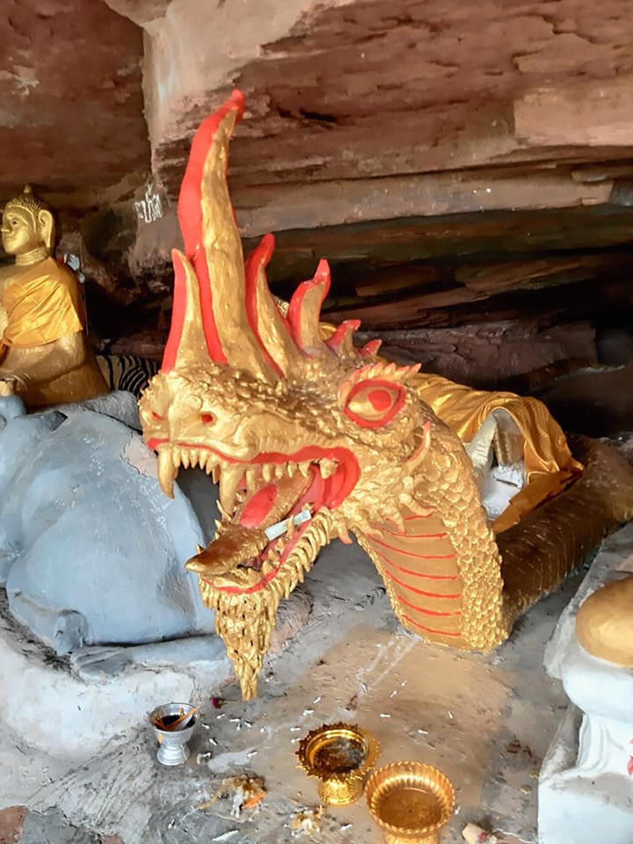 สาป...ให้กลายเป็นหินสิงสถิตอยู่ในสถานที่ ต่างๆทั่วเมืองบึงกาฬ ซึ่งรวมทั้งหินที่ดูคล้ายพญานาคในถ้ำนาคาด้วย