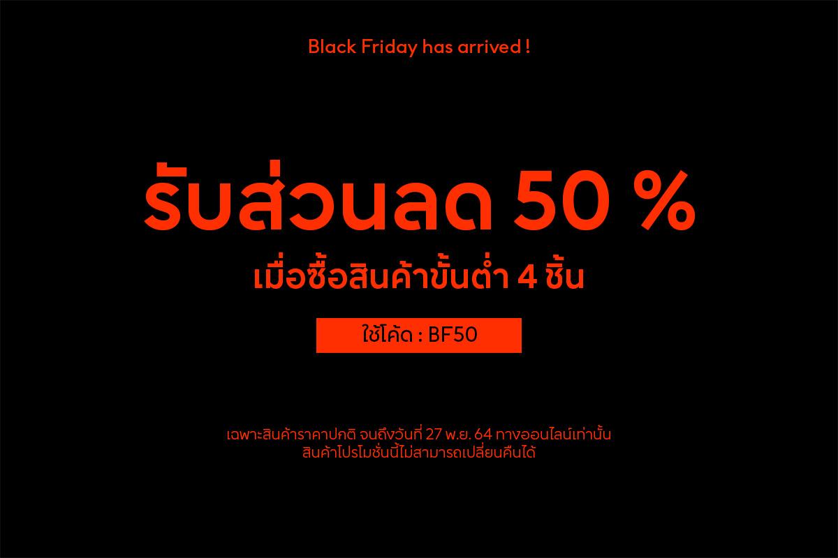 H&M Black Friday จัดโปรโมชันลดราคาเสื้อผ้าแฟชั่น 50% เมื่อกดสินค้าราคาปกติลงตะกร้า 4 ชิ้นขึ้นไป กรอกโค้ด BF50 เลือกวิธีชำระเงินผ่านบัตรเครดิต หรือบัตรเดบิต และเลือกรับสินค้าที่บ้าน หรือที่สโตร์