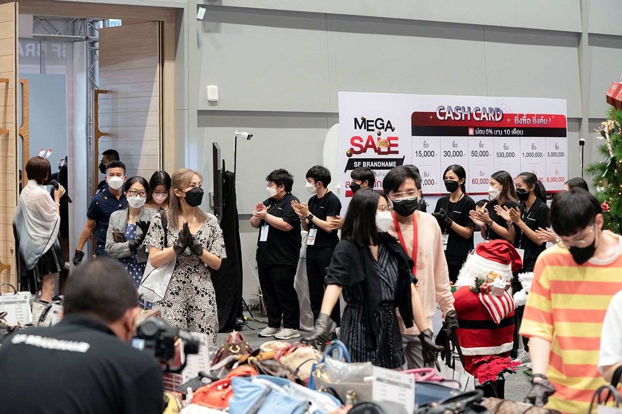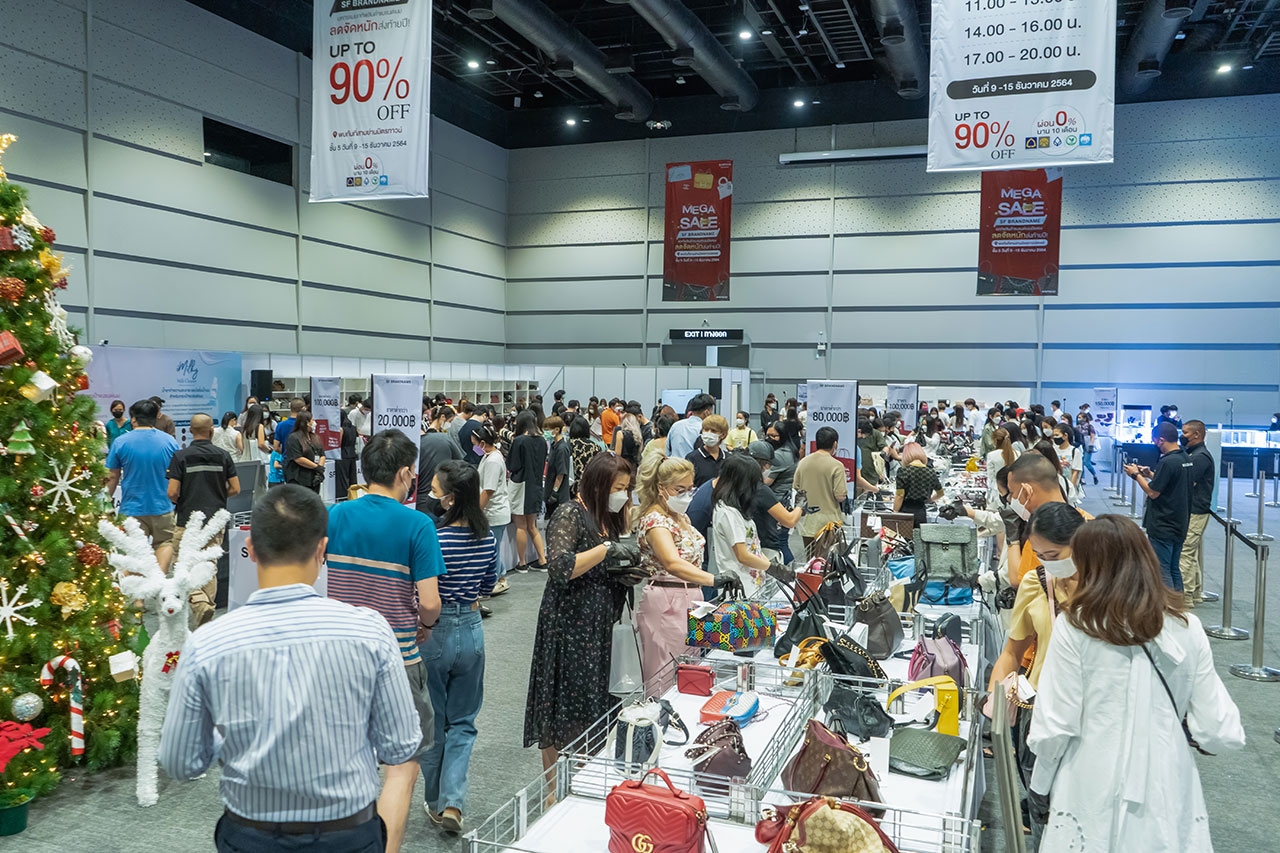 หนึ่งงานเซลล์สินค้าแบรนด์เนมมือสองที่ยิ่งใหญ่ที่สุดในไทย กับ SF BRANDNAME MEGA SALE 2021 ตั้งแต่ 9-15 ธันวาคม 2564 ที่ผ่านมา เรียกว่าประสบความสำเร็จเป็นอย่างมาก วัดได้จากจำนวนคนที่แห่ไปเลือกซื้อสินค้ากันอย่างล้นหลาม