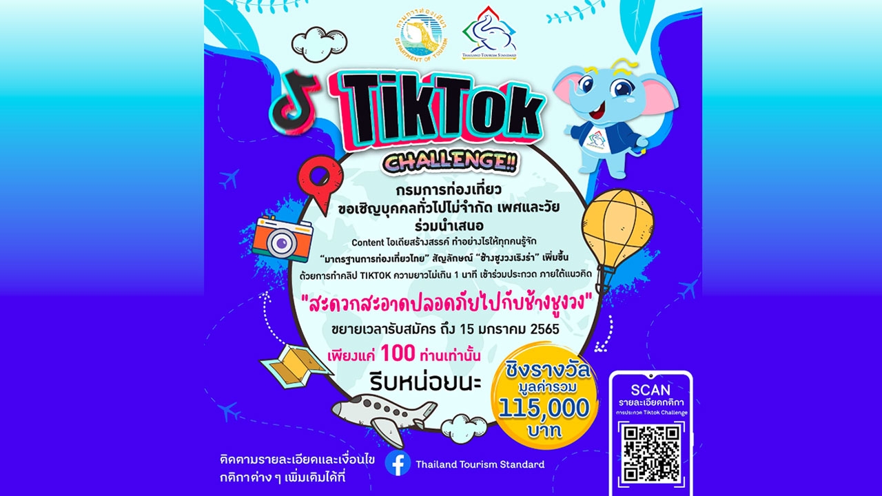 กรมการท่องเที่ยว จัดกิจกรรมเชิงรุกสร้างการมีส่วนร่วมกับประชาชน นักท่องเที่ยว และผู้ประกอบการเป้าหมาย เพื่อประชาสัมพันธ์มาตรฐานการท่องเที่ยวไทย สัญลักษณ์ช้างชูงวงเริงร่า และกระตุ้นการท่องเที่ยว พร้อมสร้างความเชื่อมั่นในการท่องเที่ยวไทยโดยอาศัยการบอกกล่าวจากนักท่องเที่ยวตัวจริง ภายใต้กิจกรรม TikTok Challenge ด้วยเล็งเห็นว่า ขณะนี้มีสื่อใหม่ๆ ที่หลากหลาย และเข้าถึงกลุ่มเป้าหมายเพิ่มมากขึ้น จึงได้นำเอากระแสความสนใจจากคลิปสั้น ผ่านแอปพลิเคชัน TikTok มาเป็นเครื่องมือในการประชาสัมพันธ์