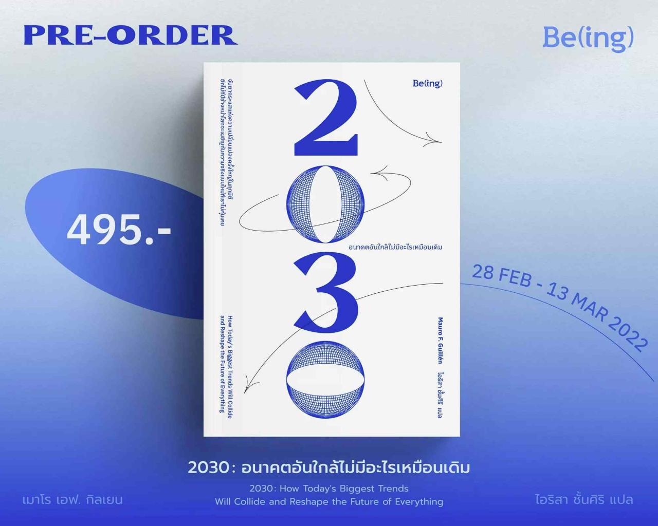 1. 2030-อนาคตอันใกล้ ไม่มีอะไรเหมือนเดิม : หนังสือที่เขียนโดย Mauro F. Guillen ผู้ศึกษาเทรนด์โลก ที่อาจเกิดขึ้นในปี ค.ศ. 2030 คลิกดูรายละเอียดได้ที่นี่