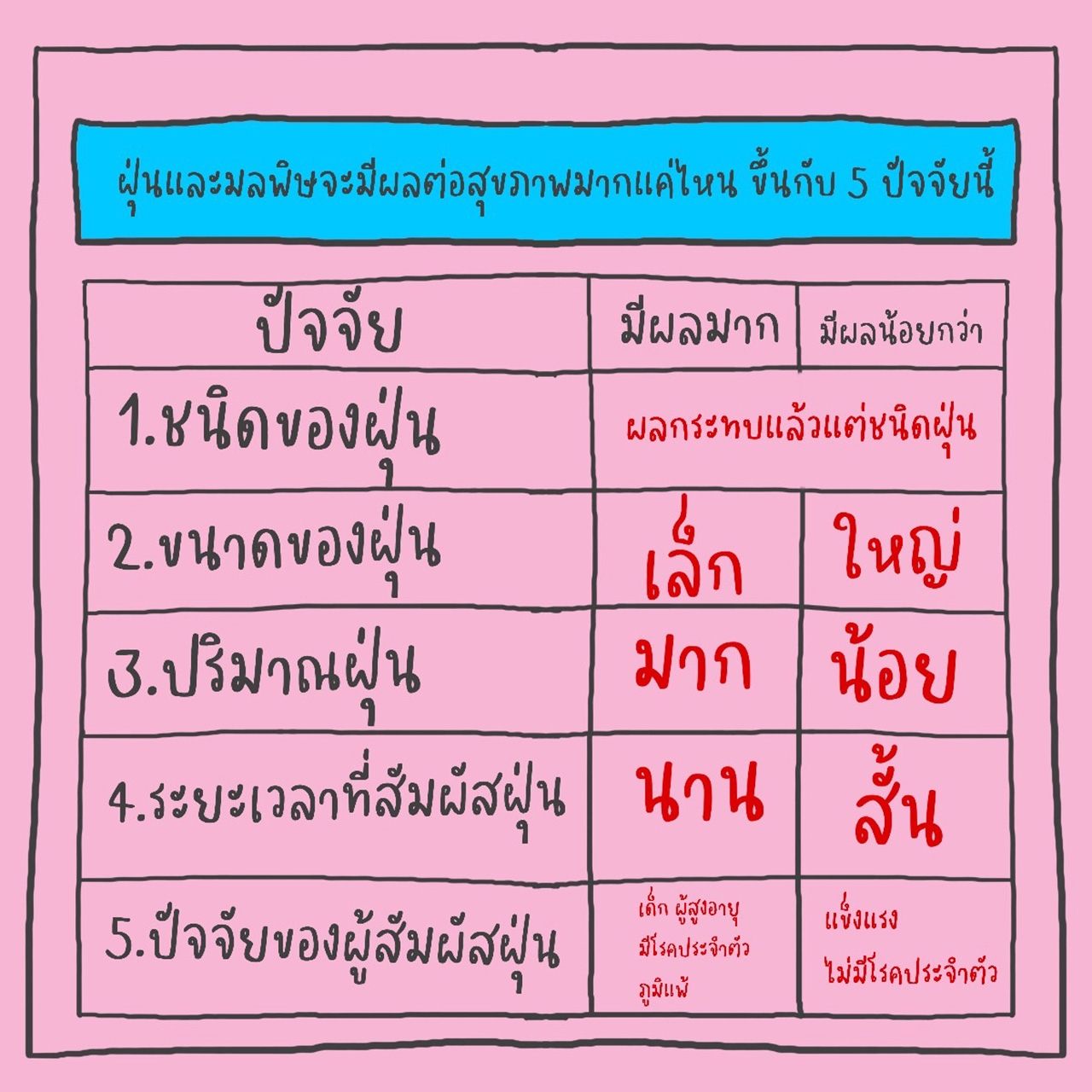 -อายุ :โดยเด็กและผู้สูงอายุจะได้รับผลกระทบต่อสุขภาพมากกว่า