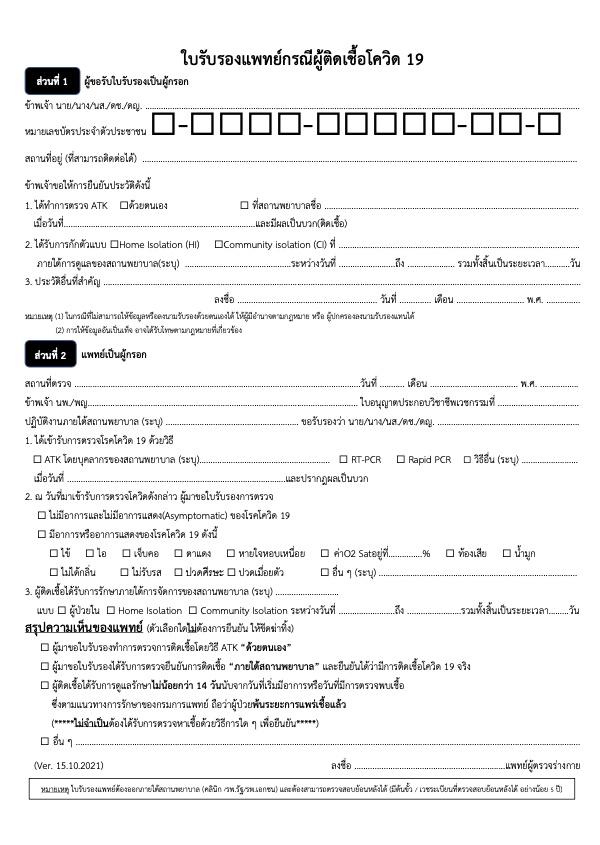 ใบรับรองแพทย์โควิด ATK ที่นำไปใช้เบิกเคลมประกัน หรือใช้อ้างอิงกับหน่วยงานต่างๆ นั้นจะต้องออกภายใต้สถานพยาบาล คลินิก โรงพยาบาลรัฐ หรือโรงพยาบาลเอกชน ที่สามารถตรวจสอบต้นขั้วได้ย้อนหลังอย่างน้อย 5 ปี กรณีที่เด็ก ผู้เยาว์ และผู้เสมือนไร้ความสามารถติดเชื้อ ผู้ลงนามคือผู้ปกครองที่สามารถลงนามรับรองแทนได้ เพราะการให้ข้อมูลที่เป็นเท็จ จะได้รับโทษตามกฎหมาย
