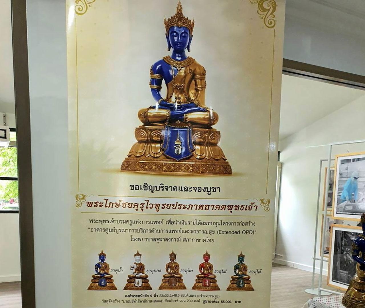 ขรรค์ ประจวบเหมาะ ผู้อำนวยการสำนักงานจัดหารายได้ สภากาชาดไทย ฝากบอกบุญใหญ่ขอเชิญชวนท่านผู้มีจิตศรัทธาร่วมบริจาค จองบูชา “พระไภษัชยคุรุไวฑูรยประภาตถาคตพุทธเจ้า” เพื่อสมทบทุนโครงการก่อสร้าง “อาคารศูนย์บูรณาการบริการด้านการแพทย์และสาธารณสุข (Extended OPD)”