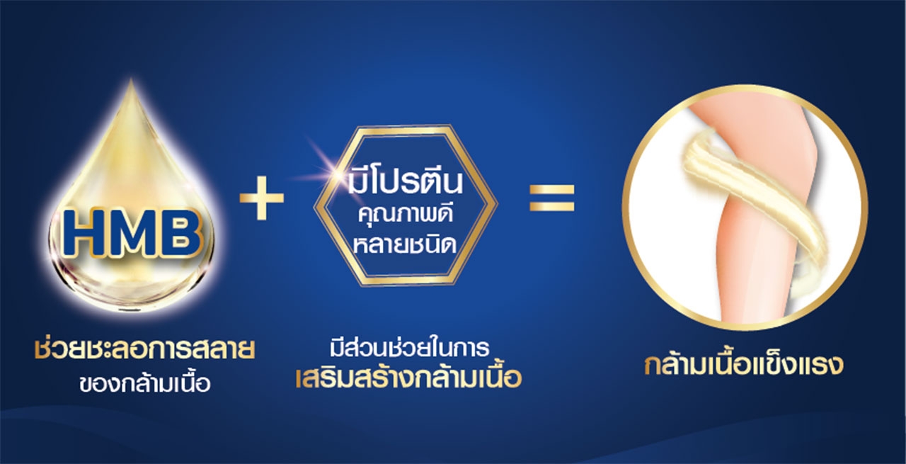 ปัจจุบันอายุขัยเฉลี่ยของคนไทยมีแนวโน้มจะเพิ่มมากขึ้นทุกวัน ด้วยการพัฒนาทางการแพทย์และเทรนด์การใส่ใจตนเองของคนยุคใหม่ ดังนั้น เพื่อให้ร่างกายยังคงแข็งแรงพร้อมจะทำกิจกรรมที่รักต่อไป จึงไม่ควรมองข้ามการสร้างเสริมกล้ามเนื้อให้แข็งแรงอยู่เสมอ และมองหาวิธีชะลอการเสื่อมสลายของกล้ามเนื้อไปพร้อมกัน อาทิ การออกกำลังกายเป็นประจำ พักผ่อนให้เพียงพอ ทานอาหารให้ครบ 5 หมู่ และเสริมด้วยอาหารสูตรครบถ้วนที่มี HMB และโปรตีนคุณภาพดีหลายชนิด อย่าง เวย์ เคซีน และโปรตีนสกัดจากถั่วเหลือง เพื่อให้ร่างกายได้รับการเสริมสร้างความแข็งแรงครบทุกมิติและไม่เสื่อมสลายก่อนช่วงวัยสำคัญ