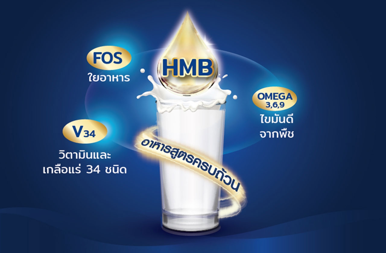 “HMB” หรือ เบต้า ไฮดรอกซี เบต้า เมทิลบิวไทเรต (beta-hydroxy-beta-methylbutyrate) คือสารอาหารที่ได้รับการศึกษาอย่างกว้างขวางในวงการวิทยาศาสตร์การกีฬา ที่มีคุณสมบัติในการช่วยเสริมสร้างและชะลอการสลายของกล้ามเนื้อ ช่วยให้กล้ามเนื้อแข็งแรง อีกทั้งยังช่วยเพิ่มมวลน้ำหนักตัวที่ไม่รวมไขมัน (Lean Body Mass) ด้วยคุณสมบัติดังกล่าว HMB จึงถูกนำมาพัฒนาให้เป็นส่วนประกอบที่สำคัญในอาหารสูตรครบถ้วน เหมาะสำหรับกลุ่มคนทั่วไป ผู้สูงอายุที่ต้องการรักษาความแข็งแรงให้กล้ามเนื้อเมื่ออายุเพิ่มมากขึ้น