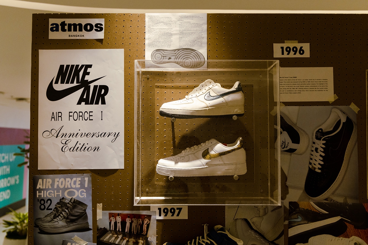 ปี 2022 เป็นปีแห่งการฉลองครบรอบ 40 ปีของสนีกเกอร์ NIKE สุดคลาสสิกอย่าง Air Force 1 รองเท้าบาสเกตบอลที่ถือกำเนิดขึ้น ครั้งแรกในปี 1982 และครองความนิยมมาอย่างยาวนาน ซึ่งในโอกาสพิเศษนี้ atmos Bangkok ได้ร่วมฉลองให้กับรองเท้ารุ่นนี้ AIR FORCE I ด้วยการจัดงาน Air Force 1 40th Anniversary Exhibition ขึ้น โดยงานครั้งนี้จะแบ่งออกเป็น 3 ส่วนใหญ่ๆ
