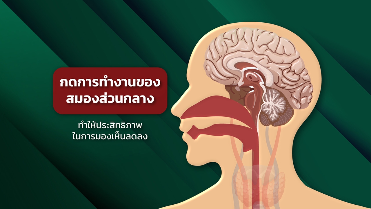 ส่วนที่สำคัญไม่แพ้กัน คือ แอลกอฮอล์ยังออกฤทธิ์ต่อสมองส่วนกลาง ที่ควบคุมการมองเห็น ทำให้ประสิทธิภาพในการมองเห็นลดลง ผู้ขับขี่อาจเห็นเป็น ภาพเบลอ ภาพซ้อน เห็นวัตถุผิดขนาด ตัดสินใจช้าและผิดพลาด รวมทั้งมีความสามารถในการมองเห็นด้านข้างลดลง โดยเฉพาะเมื่อขับขี่มาด้วยความเร็วสูง และจะยิ่งอันตรายมากขึ้น หากแอลกอฮอล์ออกฤทธิ์ไปยังสมองส่วนที่ควบคุมการทรงตัวและเคลื่อนไหว จนอาจทำให้ไม่สามารถบังคับร่างกายรวมถึงรถได้เลย