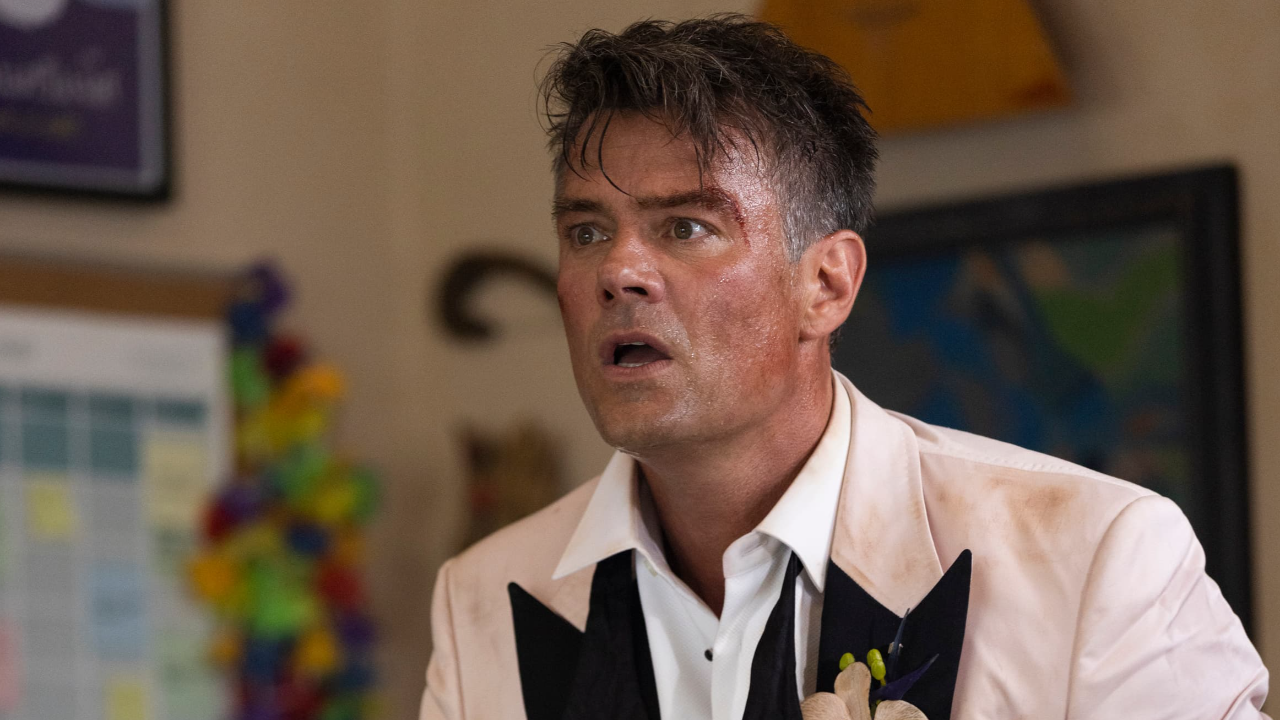 ท่ามกลางความวุ่นวาย จู่ๆ ก็มีกลุ่มก่อการร้ายปรากฏตัวขึ้นกลางงาน พร้อมจับแขกที่มาร่วมงานเป็นตัวประกัน ยิ่งเพิ่มความอลหม่านให้วิวาห์สุดป่วนในครั้งนี้ ดาร์ซี่และทอมจึงต้องเผชิญกับด่านทดสอบรักแท้ท่ามกลางดงกระสุน เมื่อหลายเหตุการณ์ไม่คาดฝันเกิดขึ้น ต้องมาลุ้นกันว่าคู่บ่าวสาวจะจับมือฝ่าอุปสรรค หรือจะหันมาสู้รบกันเองเสียก่อน ติดตามได้ใน "Shotgun Wedding" (ฝ่าวิวาห์ระห่ำ)