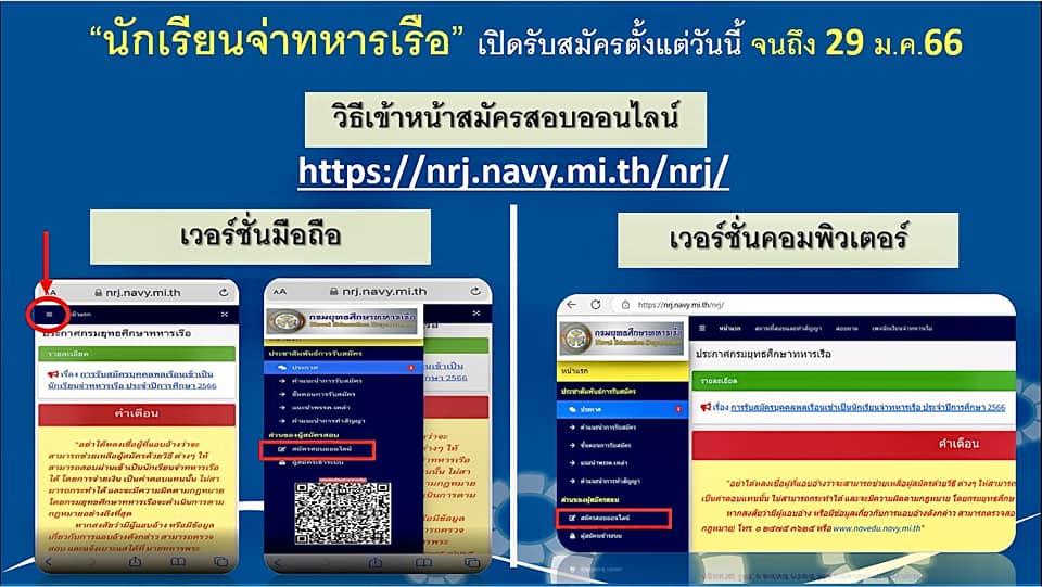 สอบถาม กรมยุทธศึกษาทหารเรือ โทร. 02 475 3663 ในวันและเวลาราชการ หรือที่เฟซบุ๊ก “นักเรียนจ่าทหารเรือ”