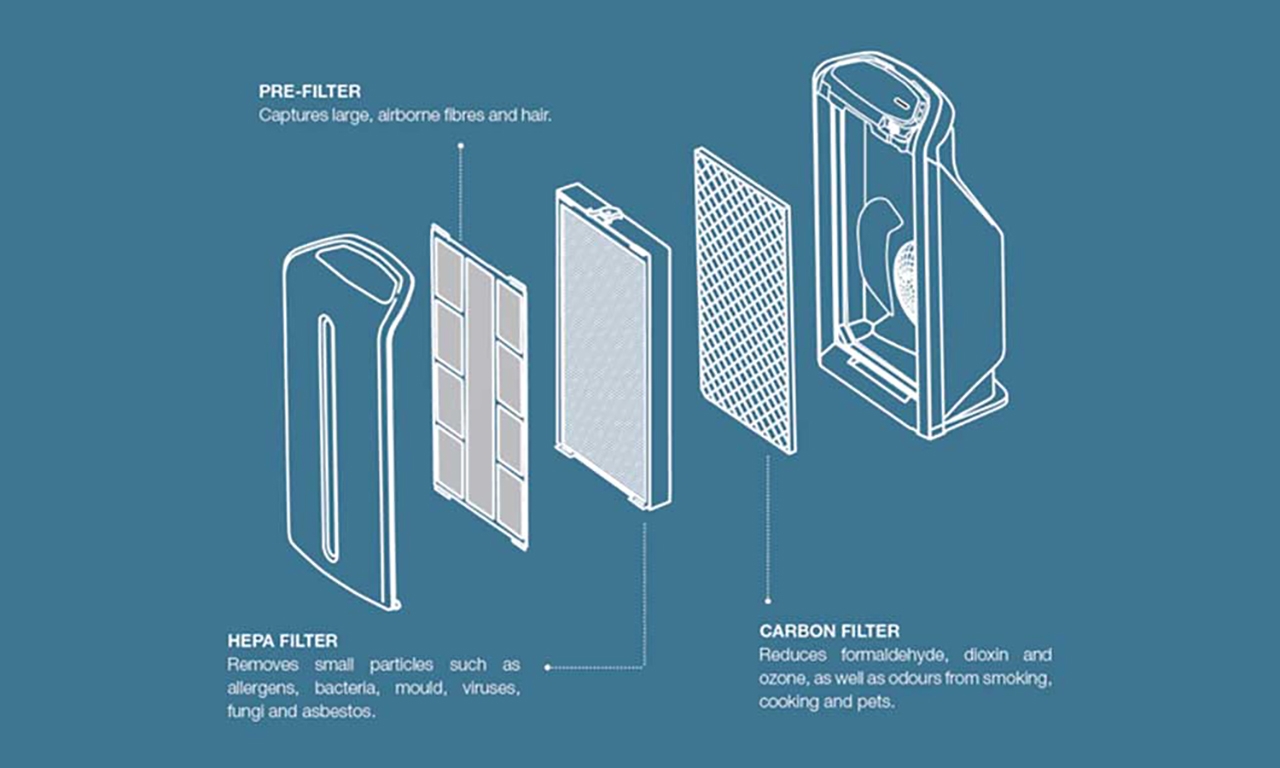 ข้อแรกคือ แนะนำให้พิจารณาหาเครื่องฟอกอากาศที่มีขั้นตอนการกรองหลายขั้นตอน เช่น แผ่นกรองหยาบชั้นแรก แผ่นกรอง HEPA กรองฝุ่น แผ่นกรองคาร์บอนกัมมันต์ กรองกลิ่น สิ่งนี้จะช่วยกรองมลพิษในวงกว้างออกจากอากาศได้อย่างมีประสิทธิภาพ