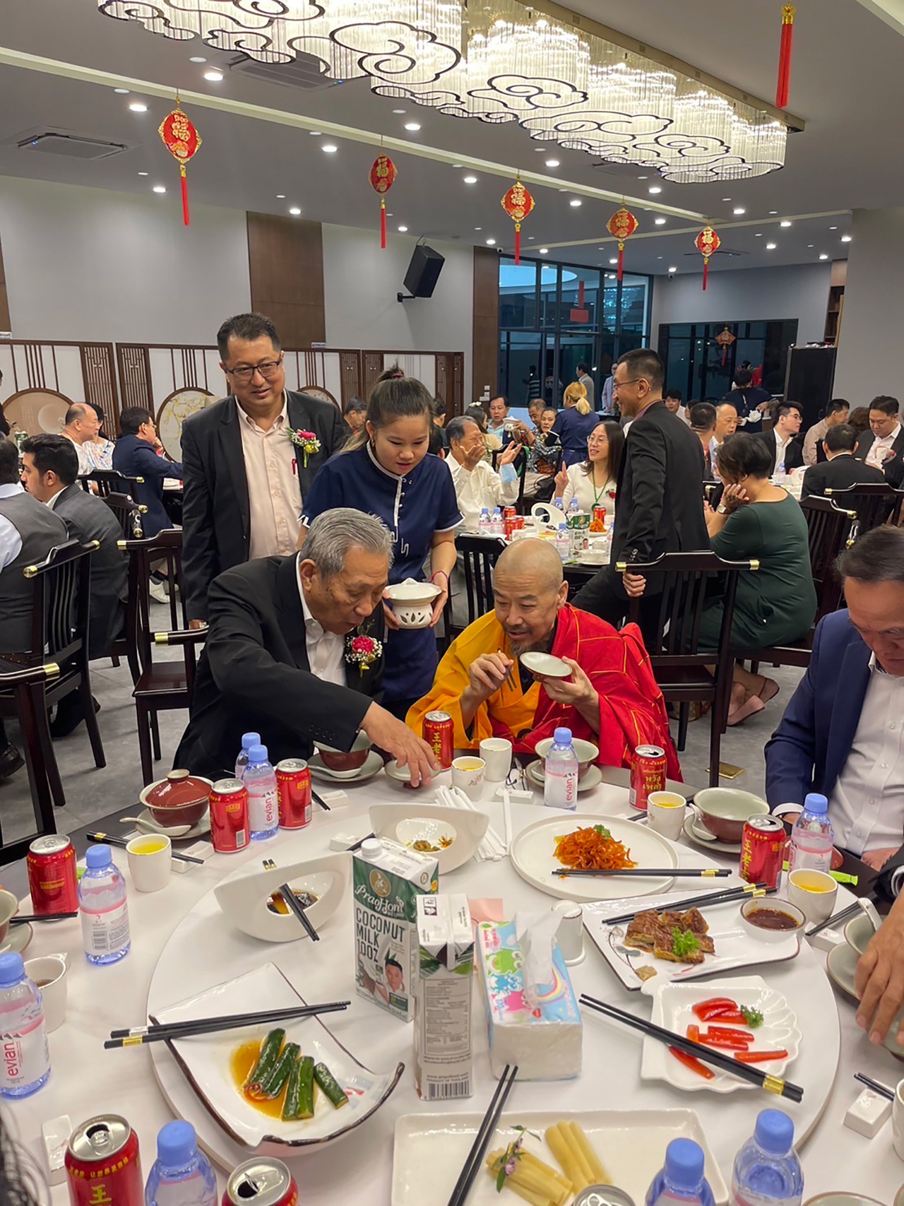 ทั้งนี้ งานดังกล่าวได้ร่วมกับทางสภาวัฒนธรรมไทยจีนและส่งเสริมความสัมพันธ์ ซึ่งนำโดยคุณพินิจ จารุสมบัติ และทีมกรรมการสภาฯ โดยมีประชาชนจีนที่อาศัยอยู่ในประเทศไทยและคนไทยเชื้อสายจีนที่ศรัทธาในวัดชางซัน เข้ามาร่วมรับประทานอาหารเจในมื้อนี้ด้วยความอบอุ่นใจ เมื่อวันที่ 30 พฤษภาคม 2566 ณ ภัตตาคารเต๋อจวง สาขา 2 ห้วยขวาง กรุงเทพฯ เวลา 18.00 น.