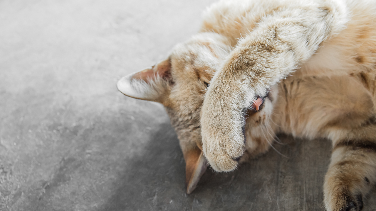 8. ท่านอนแมวเอามือปิดหน้า (Paws Across the Face)