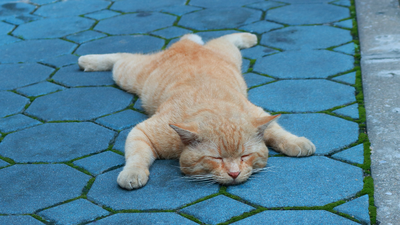 เป็นเรื่องปกติของทาสแมวที่จะได้เห็นเจ้าเหมียว นอนไม่เป็นท่า หรือนอนท่านอนแมวแปลกๆ และทำหน้าตานิ่งเฉย แม้ว่าจะหยอกล้อหรือเล่นด้วย ซึ่งลักษณะการนอนแบบนี้สื่อความหมายว่า แมวกำลังรู้สึกสบายตัวและสบายใจเป็นพิเศษ