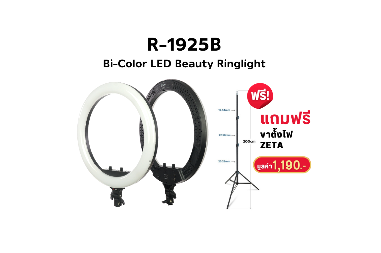 ไฟริงไลต์รุ่น R1925B Ringlight LED จาก Tolifo ไฟไลฟ์สดขนาด 19 นิ้ว เหมาะสำหรับงานประเภทแต่งหน้า ถ่ายภาพนิ่ง ถ่ายวีดีโอและไลฟ์สด ให้แสงสว่างจากหลอดไฟ LED กว่า 240 หลอด มีความสว่างให้เลือกทั้งหมด 10 ระดับ ปรับอุณหภูมิแสงได้ตั้งแต่ 3000K-6500K ตอบโจทย์กับการใช้งานรูปแบบต่างๆ อย่างหลากหลาย