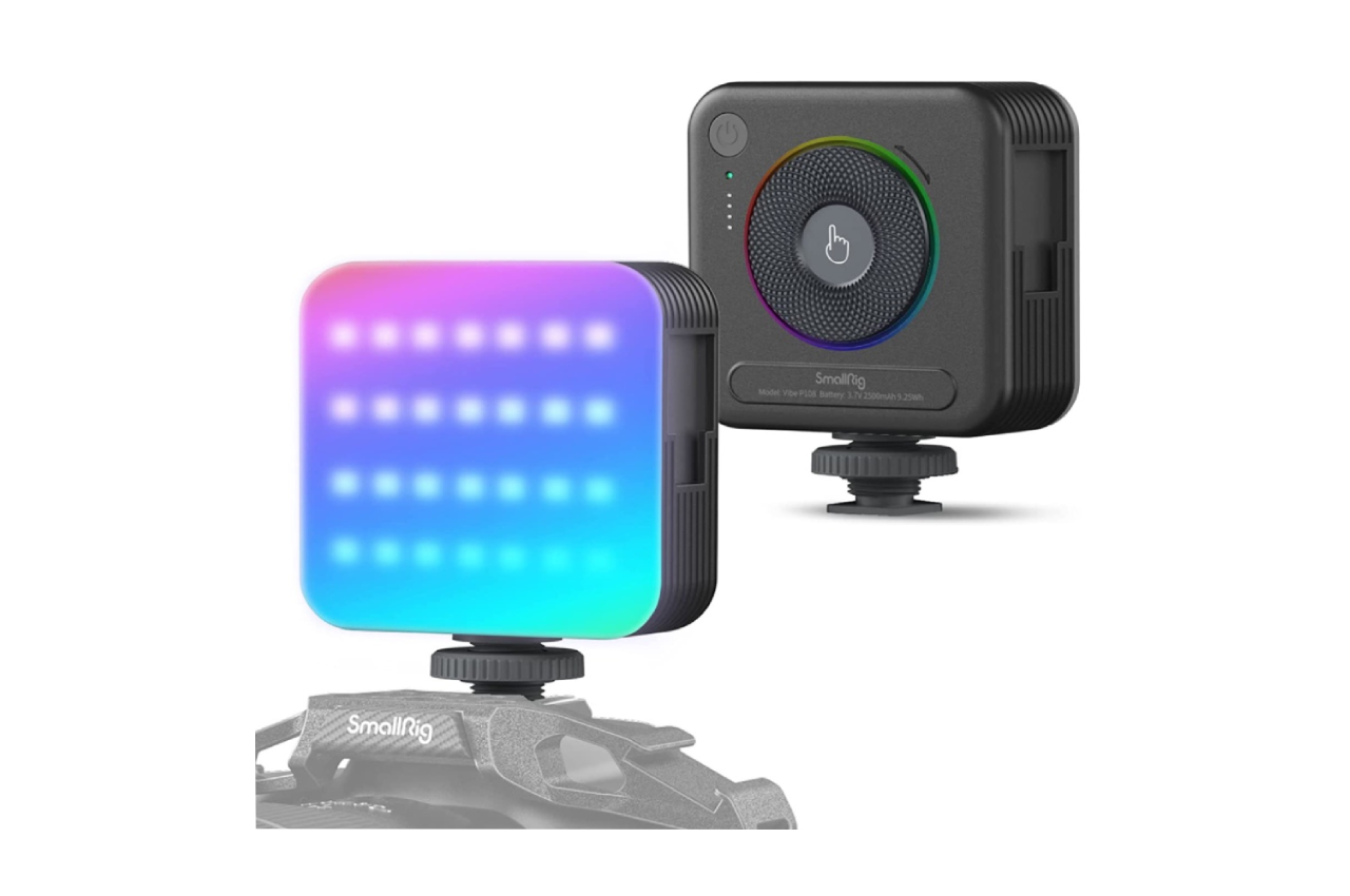 ไฟไลฟ์สด SmallRig รุ่น P108 ไฟขนาดกะทัดรัด มีแบตเตอรี่ในตัว ปรับแสงได้หลากหลาย ไม่ว่าจะเป็นแสงสีขาว สีซอฟต์ สีวอร์มไลต์และไฟ RGB ที่ปรับได้อิสระกว่า 36,000 สี มี Cold Shoe Mount นำมาเชื่อมต่อกันเพื่อเพิ่มแสงสว่างได้ ติดได้ทั้งบนขาตั้งกล้อง กล้องถ่ายวิดีโอ และมือถือ ใช้เป็นไฟเซลฟี่ ไฟไลฟ์สด หรือไฟสตูดิโอได้ พกพาง่าย น้ำหนักเบา
