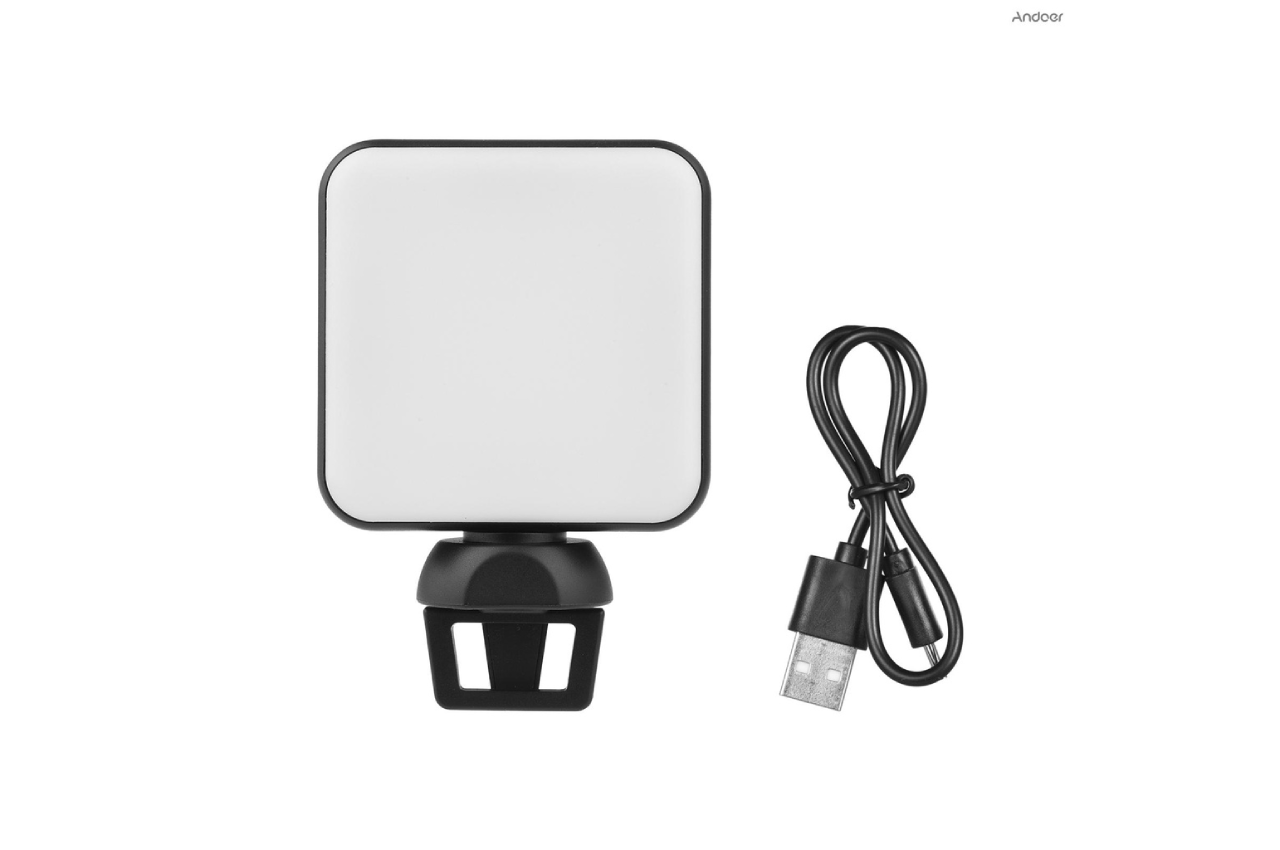 ไฟไลฟ์สด Andoer รุ่น W36 ไฟ LED สำหรับไลฟ์สตรีม ขนาดกะทัดรัด สามารถพกพาได้ง่าย น้ำหนักเบา ปรับค่าความสว่างให้เข้ากับสภาพแวดล้อมได้ง่ายๆ ในปุ่มเดียว มีแบตเตอรี่ในตัวขนาด 1,200 mAh มีช่อง Cold Shou Mount ที่สามารถนำไฟรุ่นเดียวกันมาเชื่อมต่อได้ ตัวฐานตั้งสามารถใช้เป็นตัวหนีบกับจอคอมฯ จอมือถือ ระหว่างไลฟ์ได้