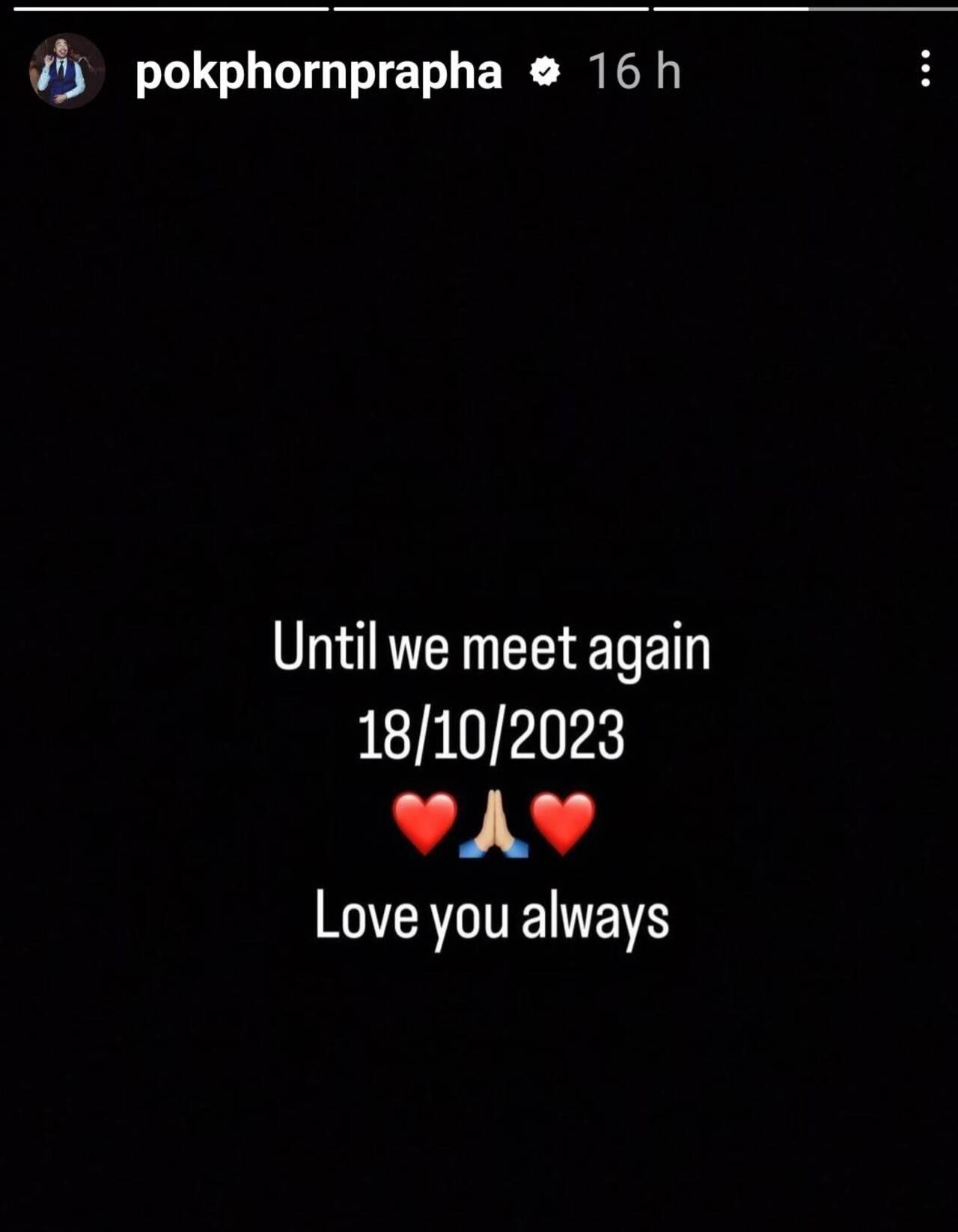 ไฮโซพก ประธานวงศ์ พรประภา โพสต์ภาพและข้อความผ่านไอจี (Instagram) ถึงการสูญเสียคุณพ่อ พรพินิจ พรประภา ที่มีการถ่ายภาพร่วมกัน พร้อมด้วยข้อความสุดอาลัยว่า Until we meet again 18/10/2023 Love you always จนกว่าจะพบกันอีกครั้ง รักเสมอ