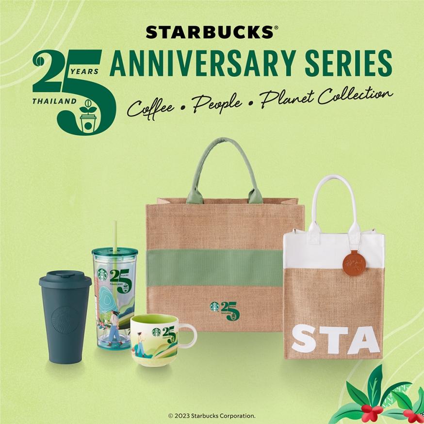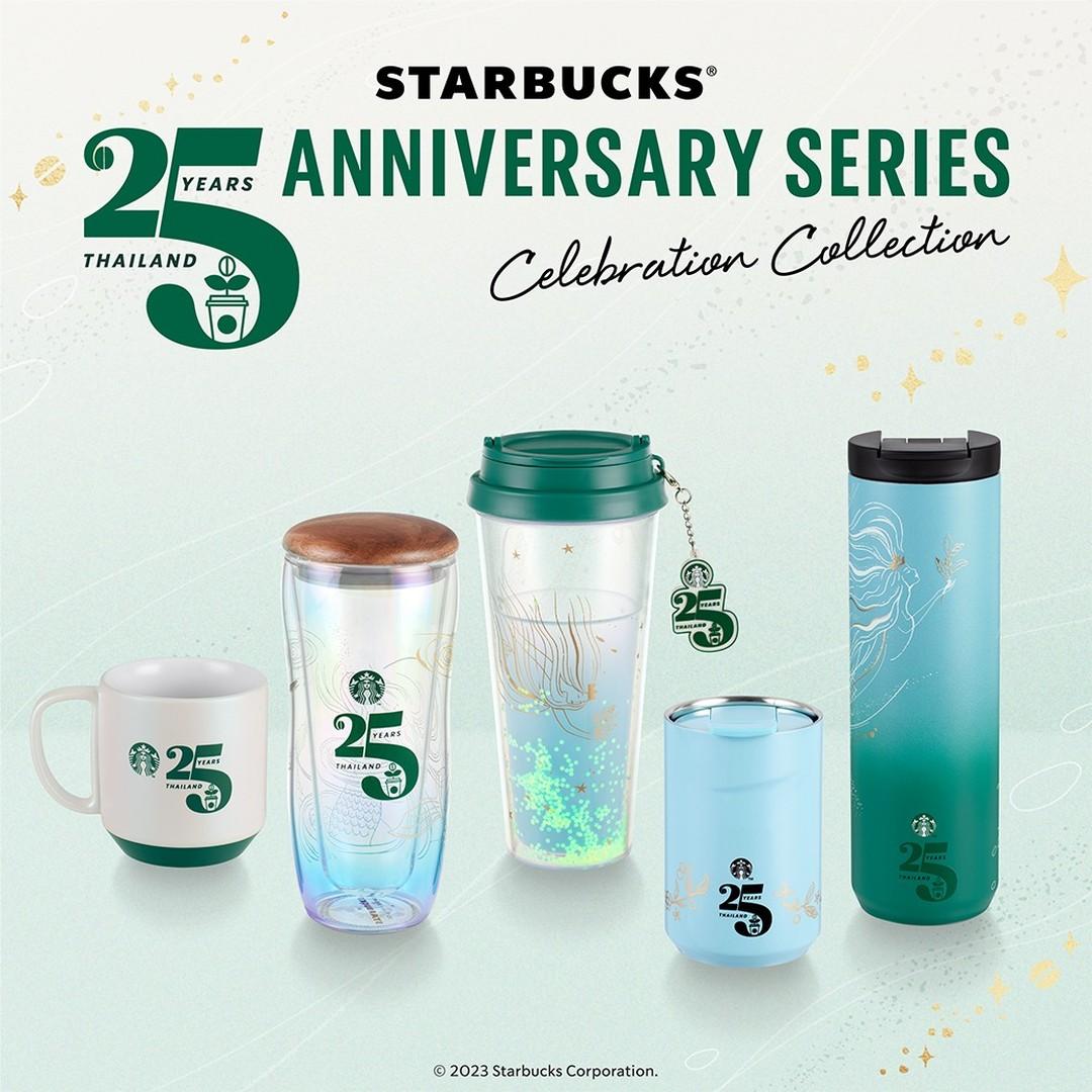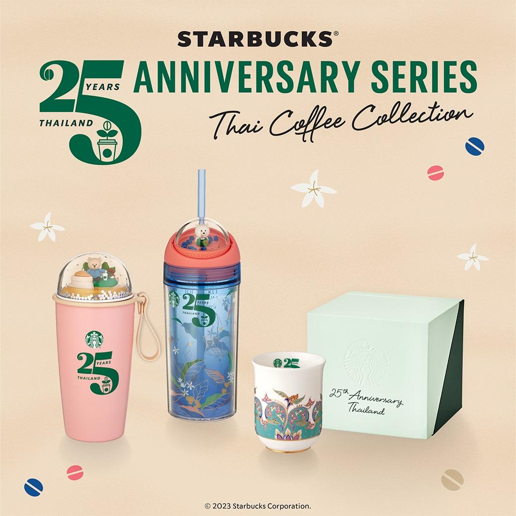 คอลเลกชันสุดพิเศษกับ แก้ว Starbucks รุ่น 25th Anniversary Series (Thai Coffee) เซตแก้วที่ออกแบบเป็นพิเศษเฉพาะในประเทศไทยเท่านั้น เป็นการออกแบบเพื่อร่วมฉลองให้กับการครบรอบ 25 ปี ของ สตาร์บัคส์ มาในรูปแบบแก้วทัมเบลอร์วัสดุสเตนเลสสตีลและพลาสติก โดดเด่นด้วยการนำเอาศิลปะลายเบญจรงค์มาร่วมออกแบบเพื่อสะท้อนถึงความเป็นไทย