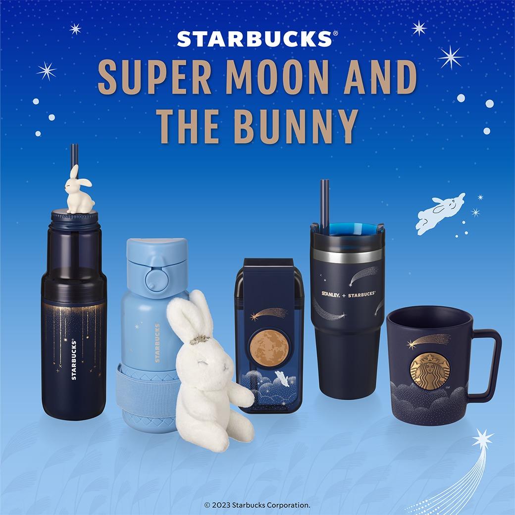 แก้ว Starbucks รุ่น Super Moon and The Bunny เซตของสะสมที่ออกแบบผ่านแรงบันดาลใจของเทศกาลวันไหว้พระจันทร์ มีให้เลือกแบบแก้วทัมเบลอร์ ขวดน้ำ และแก้วมัก โดดเด่นด้วยลวดลายของกระต่ายและพระจันทร์ ตลอดจนดวงดาวต่างๆ ที่หยิบมาเป็นสีสันในค่ำคืนสุดพิเศษจากสตาร์บัคส์