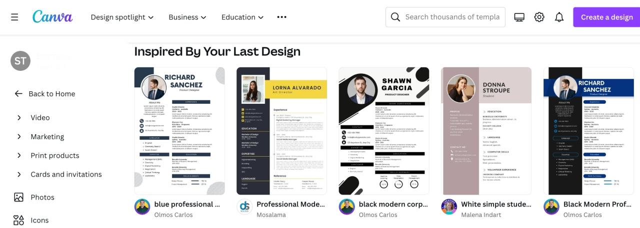 เว็บไซต์ CANVA เป็นเว็บไซต์ที่มี Resume Template สำเร็จรูปให้คุณเลือกนำข้อมูลของคุณมากรอก แล้วบันทึกเป็นไฟล์เอกสาร .pdf พร้อมส่งต่อให้กับผู้รับได้เช่นกัน วิธีการทำเรซูเม่บนเว็บไซต์ CANVA มีดังนี้