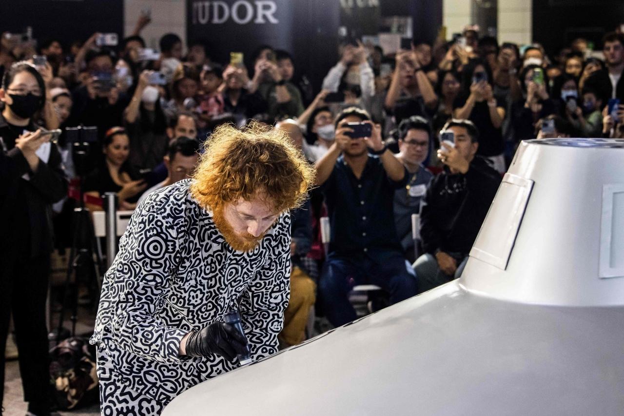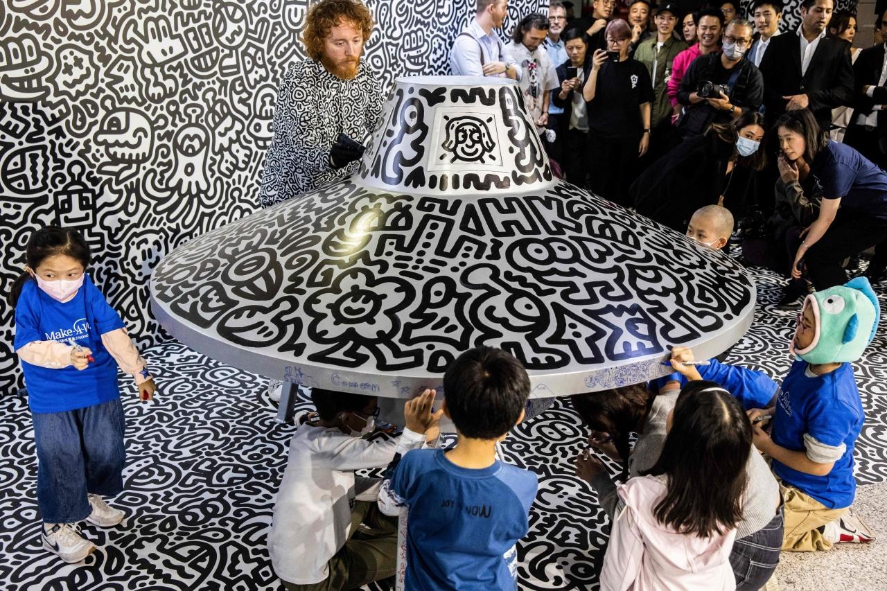 แซม ค็อกซ์ (Sam Cox) หรือที่หลายคนรู้จักเขาในชื่อ มิสเตอร์ดูเดิล (Mr. Doodle) ศิลปินชาวอังกฤษที่โด่งดัง เจ้าของผลงานการวาดลายเส้นยึกยือ ที่ดูสนุกสนาน โชว์ผลงานล่าสุดเมื่อวันที่ 19 พ.ย. ที่ผ่านมา ในบริเวณศูนย์กลางการเดินทางสถานีรถไฟฟ้าใต้ดิน ที่ฮ่องกง