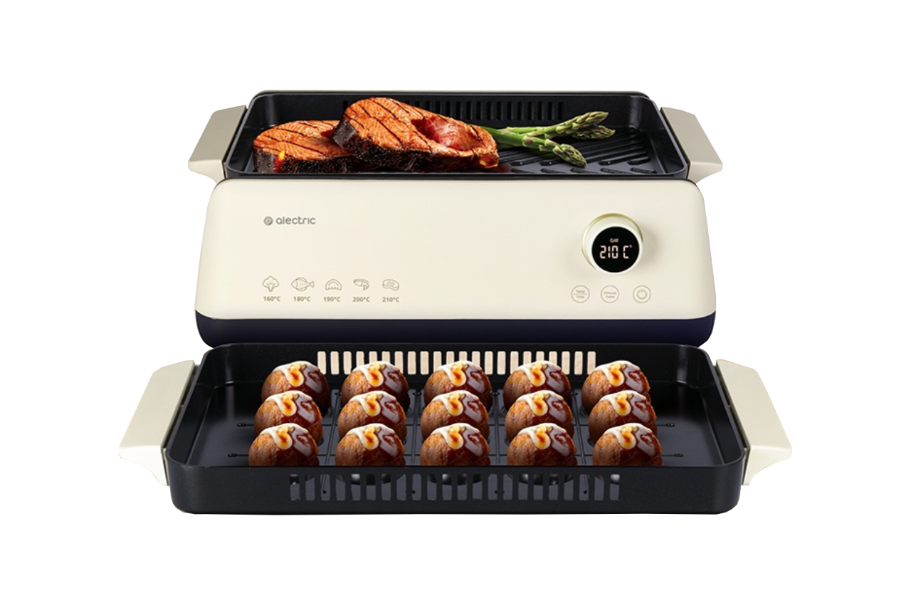 เตาปิ้งย่างไฟฟ้า Alectric รุ่น SG1-X2 เตาปิ้งย่างไร้ควันแบบ 3in1 สามารถทำได้ทั้งเมนูปิ้งย่าง สุกี้ชาบู และทาโกะยากิ มีระบบโบลเวอร์ช่วยการดูดควันและดูดกลิ่น เหมาะกับคนอยู่ในคอนโดฯ สามารถปรับอุณหภูมิได้ตามต้องการ สูงสุดที่ 210 องศาเซลเซียส มีเซนเซอร์ตรวจจับอุณหภูมิสูงเกินไป ป้องกันไฟฟ้าลัดวงจร มีให้เลือกทั้งแบบ 3 เตา และ 1 เตา