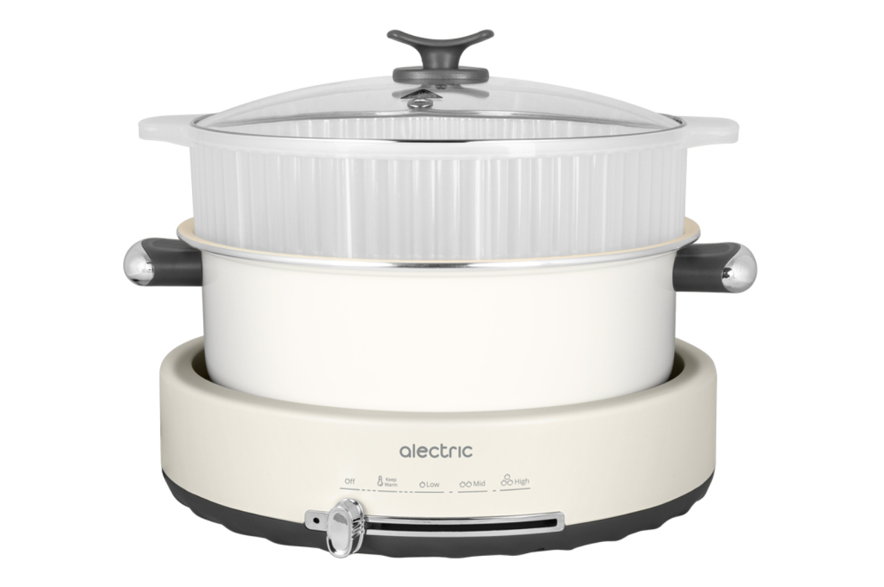 เตาปิ้งย่างไฟฟ้า Alectric รุ่น EP-M1 เตาปิ้งย่างอเนกประสงค์ มีทั้งถาดย่างและหม้อต้ม มีโหมดการทำงานให้เลือกหลากหลาย สามารถใช้ทำได้หลายเมนู เช่น เมนูต้ม แกง ทอด และอื่นๆ ความจุของหม้อต้มสูงสุด 5 ลิตร ทำอาหารหรือต้มชาบูได้แบบจุใจ มีระบบตัดไฟอัตโนมัติเมื่ออุณหภูมิสูงเกินไป