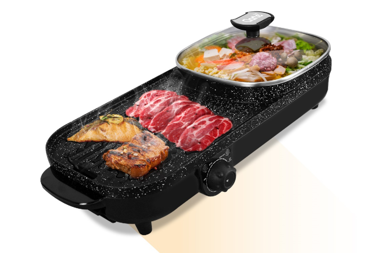 เตาปิ้งย่างไฟฟ้า IMARFLEX รุ่น EG-690 เตาปิ้งย่างแบบ 2in1 ใช้งานได้ทั้งเตาย่างและเตาต้มได้พร้อมกัน มีตัวปรับความร้อนแยกกัน ทำให้สามารถเลือกอุณหภูมิได้อย่างอิสระ มีสารเคลือบ Non Stick ช่วยให้อาหารไม่ติดเตา ทำความสะอาดง่าย หม้อต้มมี 2 ช่อง สามารถทำได้ 2 เมนูพร้อมกัน มาพร้อมกับฝาแก้วใส ที่ทำให้มองเห็นอาหารด้านในได้สะดวกขึ้น