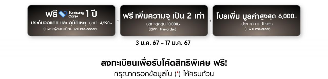 - ฟรี Samsung Care+ 1 ปี รับประกันจอแตกและอุบัติเหตุ มูลค่า 4,590 บาท