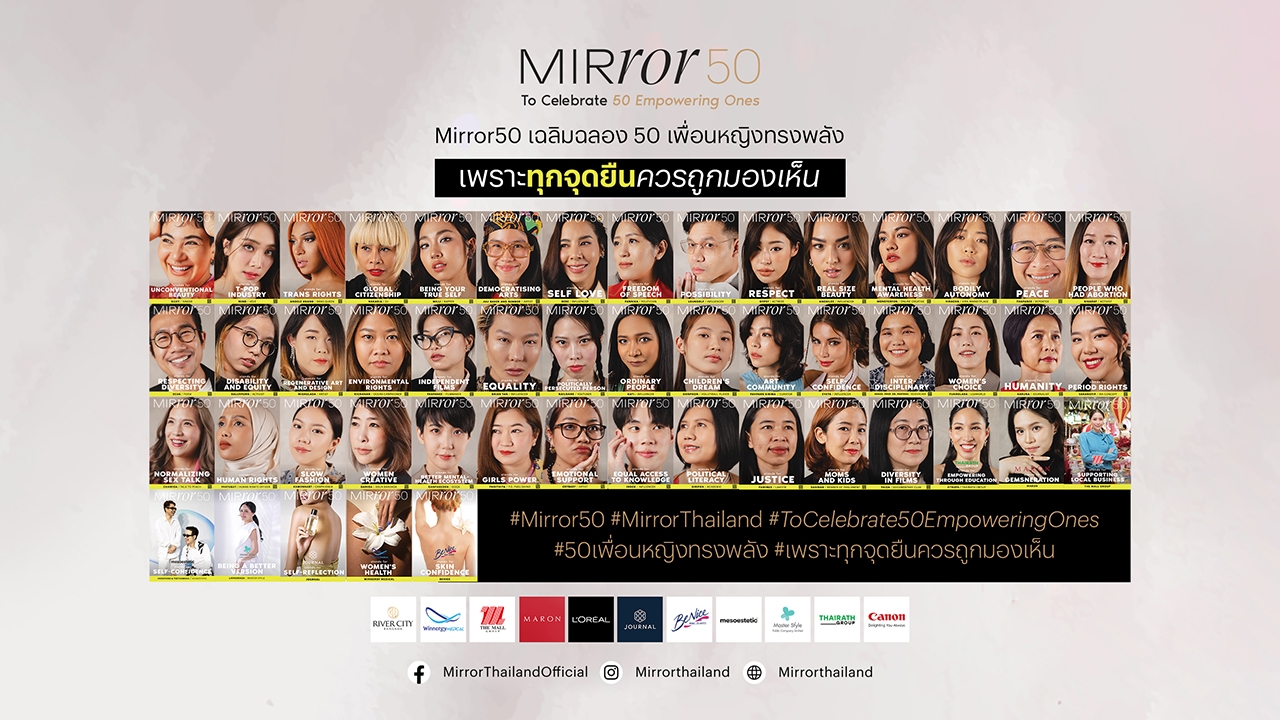 เริ่มต้นปี 2567 ด้วยการขับเคลื่อนที่ทรงพลังโดย Mirror Thailand แบรนด์ในเครือของ Thairath Online ได้จัดงานเฉลิมฉลองให้กับ 50 ตัวแทนเพื่อนหญิงและเพศหลากหลายผู้ทรงพลังผ่านโปรเจกต์ “Mirror 50” เพื่อสานต่อความมุ่งมั่นที่ได้ริเริ่มมาตั้งแต่ปี 2566 และเฉลิมฉลองให้กับ 50 รายชื่อของทั้งบุคคลและองค์กรที่เชื่อมั่นในจุดยืนของตนเอง พร้อมผลักดันและสร้างแรงบันดาลใจให้เกิดการเปลี่ยนแปลงในสังคม