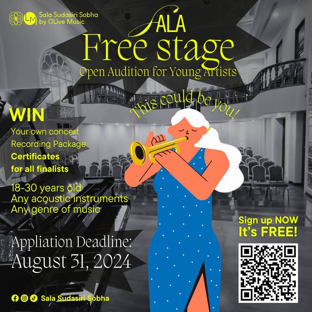SALA FREE STAGE สามารถสมัครได้ถึงวันที่ 31 สิงหาคม 2567 โดยไม่เสียค่าใช้จ่ายใดๆ สามารถติดต่อสอบถามข้อมูลเพิ่มเติมได้ที่เพจเฟสบุ๊ก Sala Sudasiri Sobha ศาลาสุทธสิริโสภา