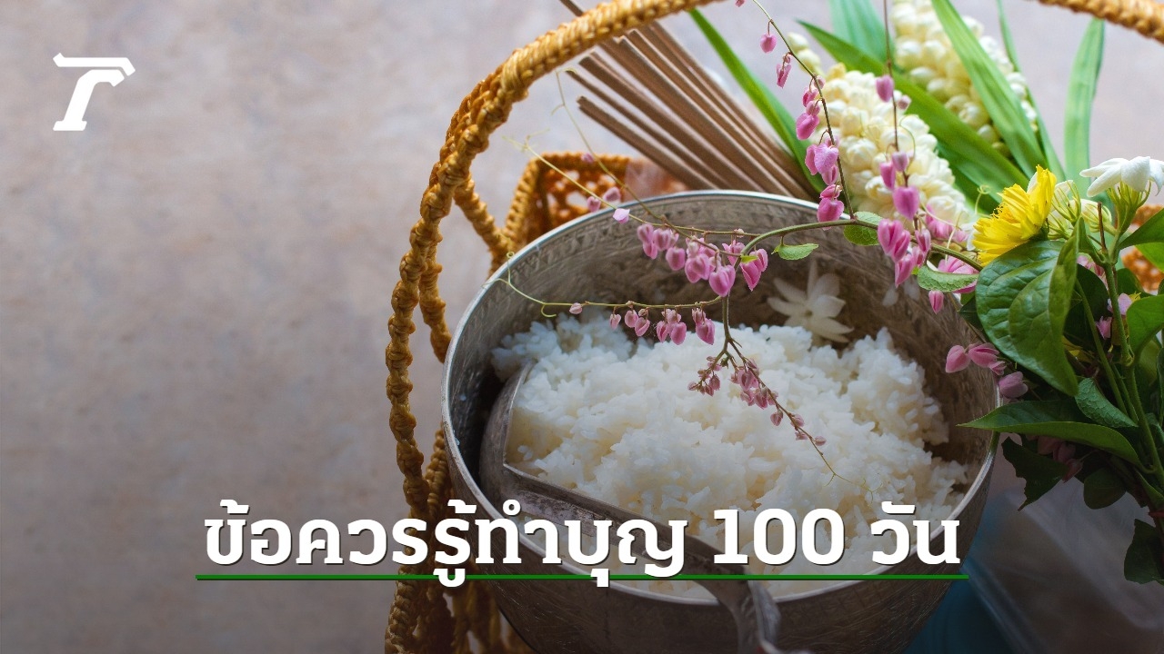 การทำบุญ 100 วัน เพื่ออุทิศส่วนกุศลไปให้ผู้ล่วงลับ เป็นความเชื่อของชาวพุทธที่ปฏิบัติสืบต่อกันมาในสังคมไทย ซึ่งมีรายละเอียดควรรู้ที่หลายคนอาจจะสงสัย เช่น ทำบุญ 100 วันนับยังไง, ใช้พระกี่รูปในการประกอบพิธี, ควรใส่เสื้อสีอะไร ตลอดจนต้องเตรียมอะไรบ้าง บทความนี้ได้รวบรวมเรื่องน่ารู้เกี่ยวกับการทำบุญ 100 วันมาฝากกัน
