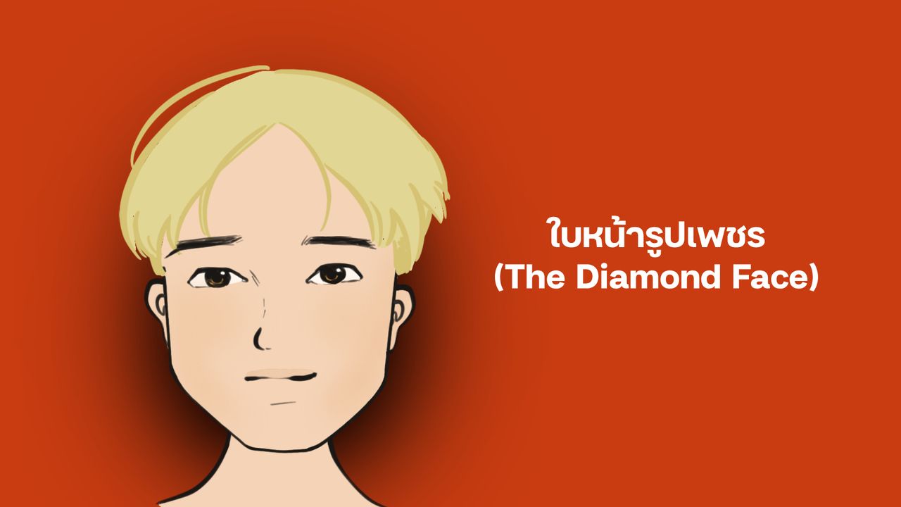 ความหมาย: คนที่มีใบหน้ารูปเพชร เป็นบุคคลสายเปย์ที่แสวงหาความตื่นเต้น สังเกตได้ว่าจะมีโหนกแก้มที่ใหญ่ คางเรียวแหลม และกรอบหน้าชัดเจน คนประเภทนี้มักจะเป็นคนร่าเริง อัธยาศัยดี ชอบเข้าสังคม เรียกได้ว่าเป็นคนที่มีเพื่อนเยอะ เป็นที่รักของทุกคนเพราะคารมคมคาย และเป็นคนใจใหญ่ กล้าได้กล้าเสีย ชอบในความหรูหรามีระดับ รวมถึงความตื่นเต้นและท้าทายในความสัมพันธ์