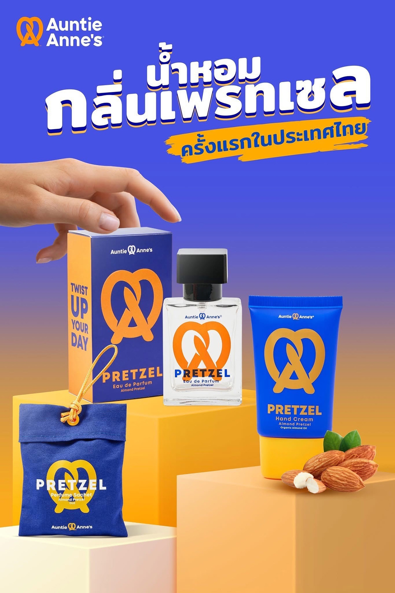 ครั้งแรกในประเทศไทย กับน้ำหอมกลิ่น Almond Pretzel จากแบรนด์ Auntie Anne’s ที่เคยสร้างกระแสมาแล้วทั่วโลก ให้เหล่าแฟนๆ ได้สัมผัสกลิ่นหอมที่เป็น Signature ของแบรนด์ ด้วยกลิ่นหอมของเนยสด ๆ ผสมกับแป้งนุ่ม ๆ หอมกรุ่น เหมือน Almond Pretzel ที่เพิ่งอบเสร็จใหม่ ๆ สุดพรีเมี่ยมที่อัดแน่นอยู่ในขวด