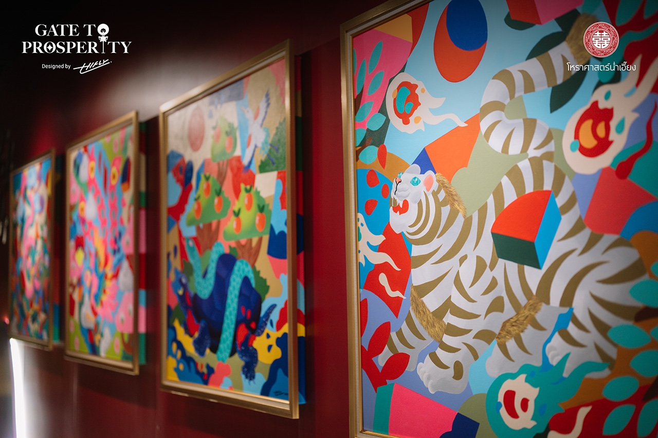 จัดแสดงภาพวาดสัตว์เทพทั้งสี่ ที่ออกแบบอย่างวิจิตรและแฝงความหมายอันลึกซึ้งเกี่ยวกับพลังมงคล โดยจะมีการประมูลภาพวาดพิเศษ ขนาด 1x1 เมตร ในวันที่ 1 กุมภาพันธ์ 2025 รายได้ส่วนหนึ่งจากการประมูลจะนำไปสนับสนุนกิจกรรมสาธารณประโยชน์