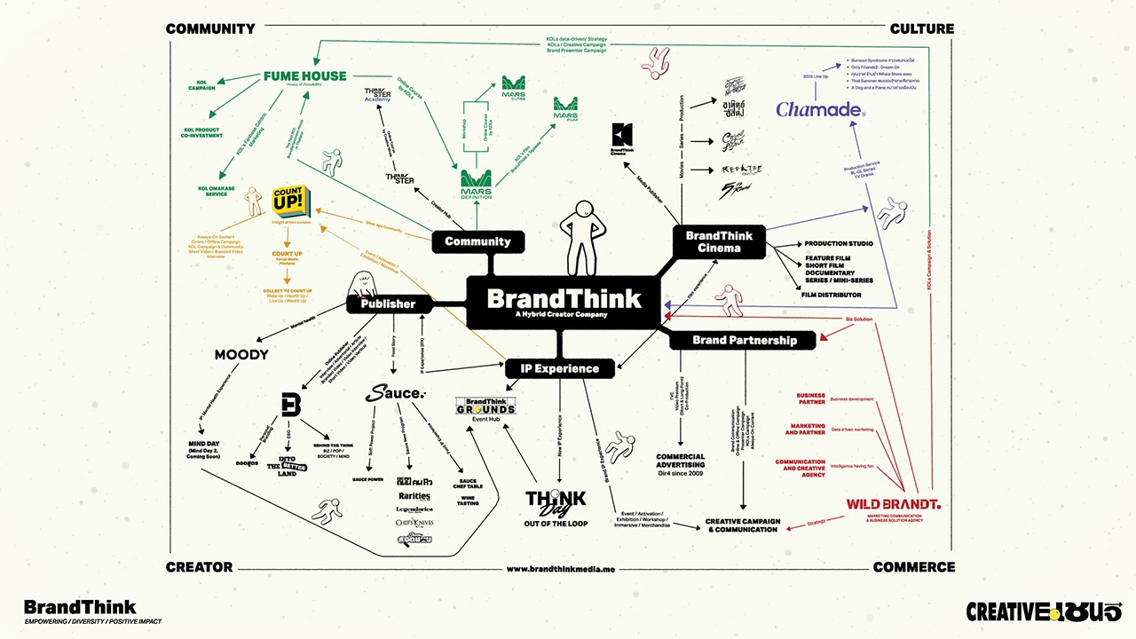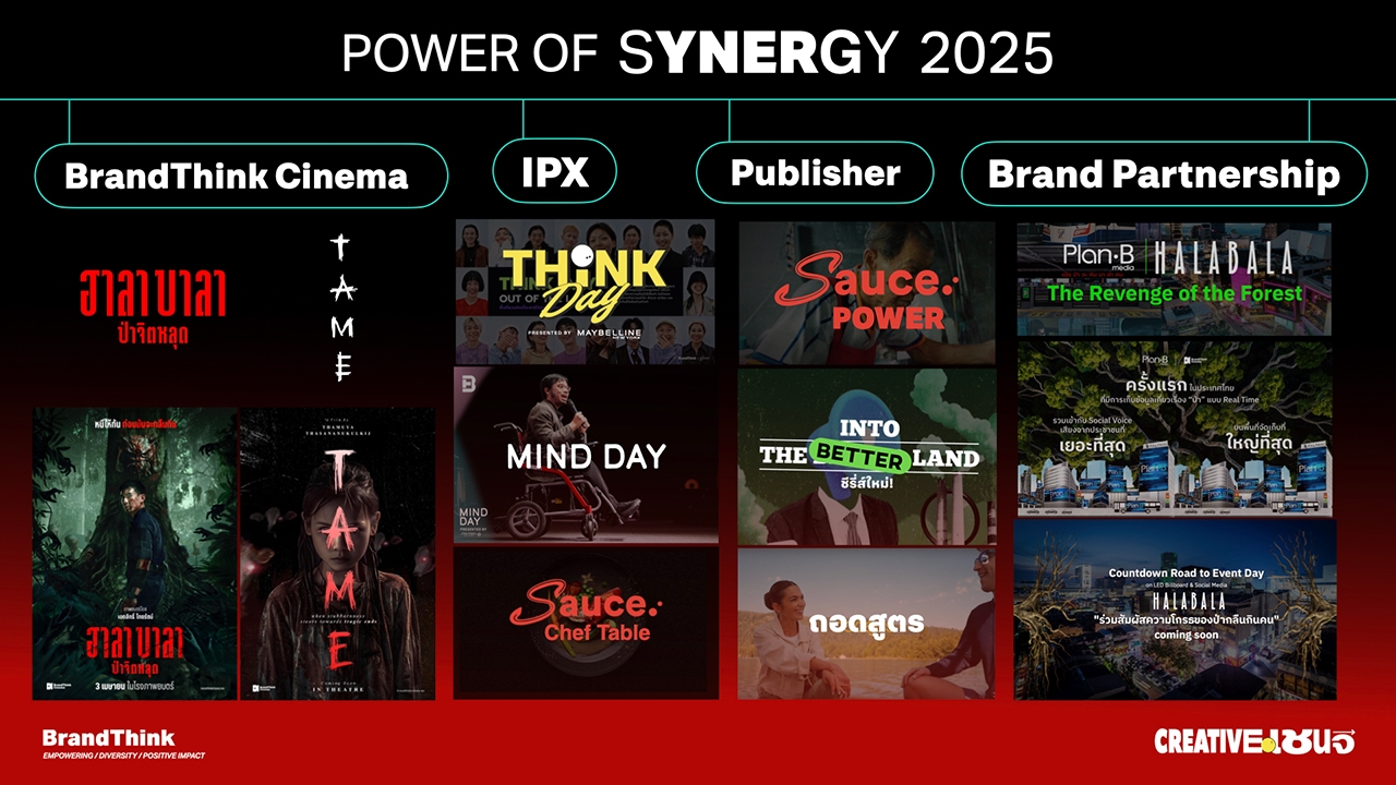 นอกจากนี้ BrandThink ยังประกาศความพร้อมในการขับเคลื่อนอุตสาหกรรมครีเอทีฟผ่าน 5 ธุรกิจใหม่ภายใต้แนวคิด ‘Synergy for Change’ เพื่อสร้างมาตรฐานใหม่และผลักดันศักยภาพของครีเอเตอร์ในทุกแพลตฟอร์ม